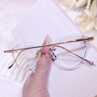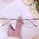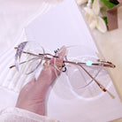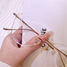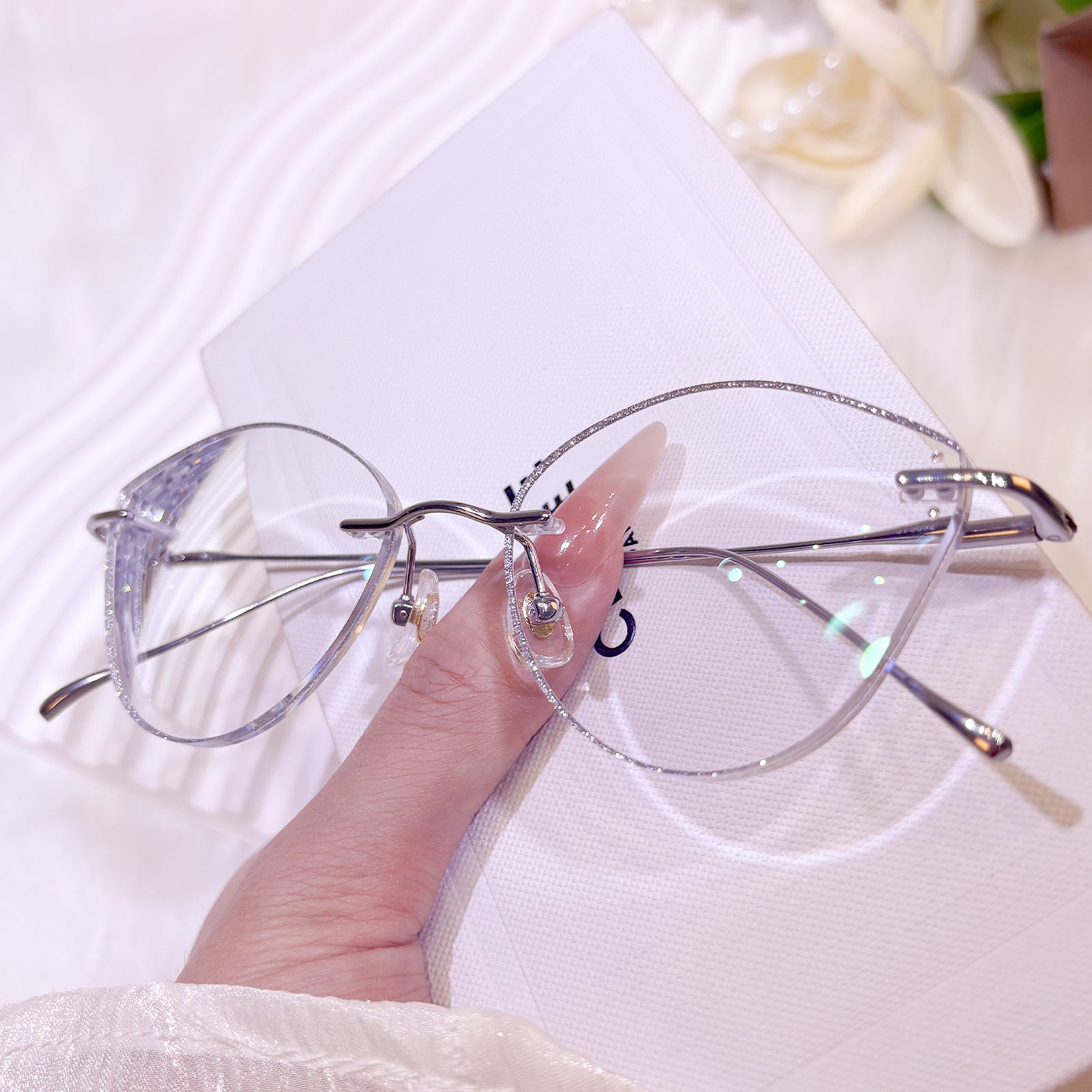 | Exclusive Design | These rimless cat-eye glasses feature dazzling rhinestone accents on the lenses, adding a luxurious sparkle. The sleek titanium temples are slim and graceful, offering a refined and elegant silhouette perfect for fashion-forward women.