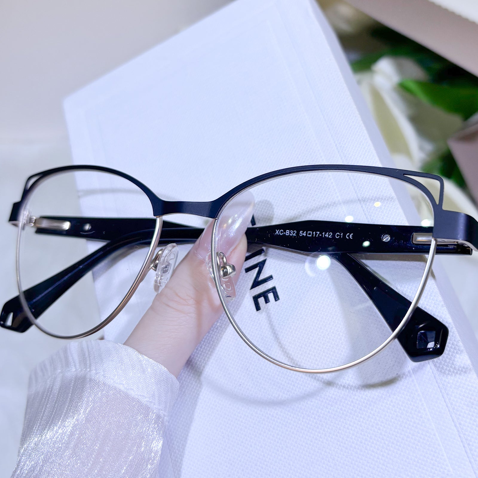 These charming cat-eye glasses combine a playful, feminine design with sleek metal construction for everyday comfort and durability. Cute yet sophisticated, they effortlessly elevate any casual look. Perfect for women who want a touch of fun in their daily style.