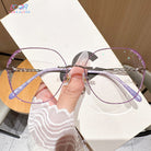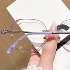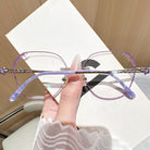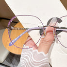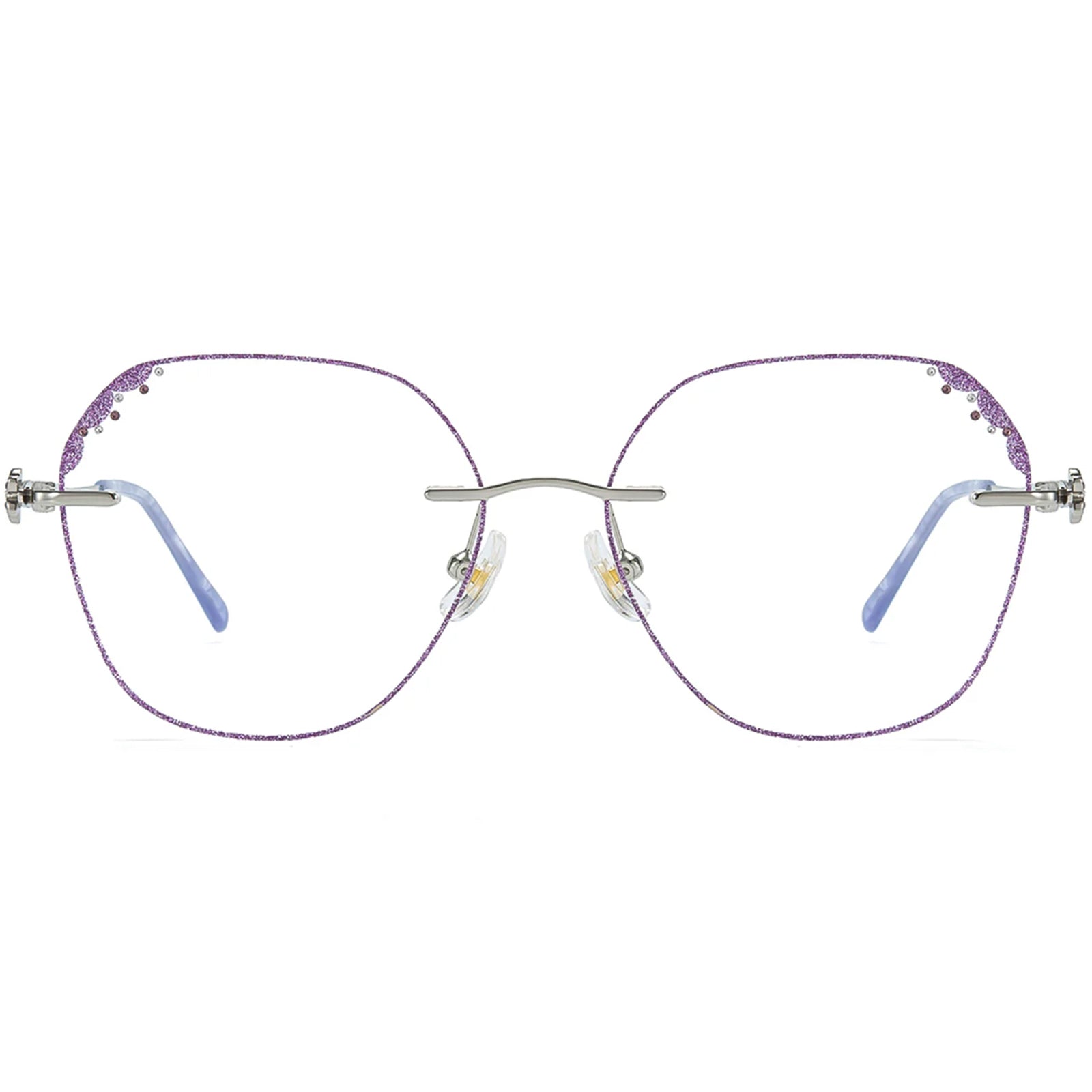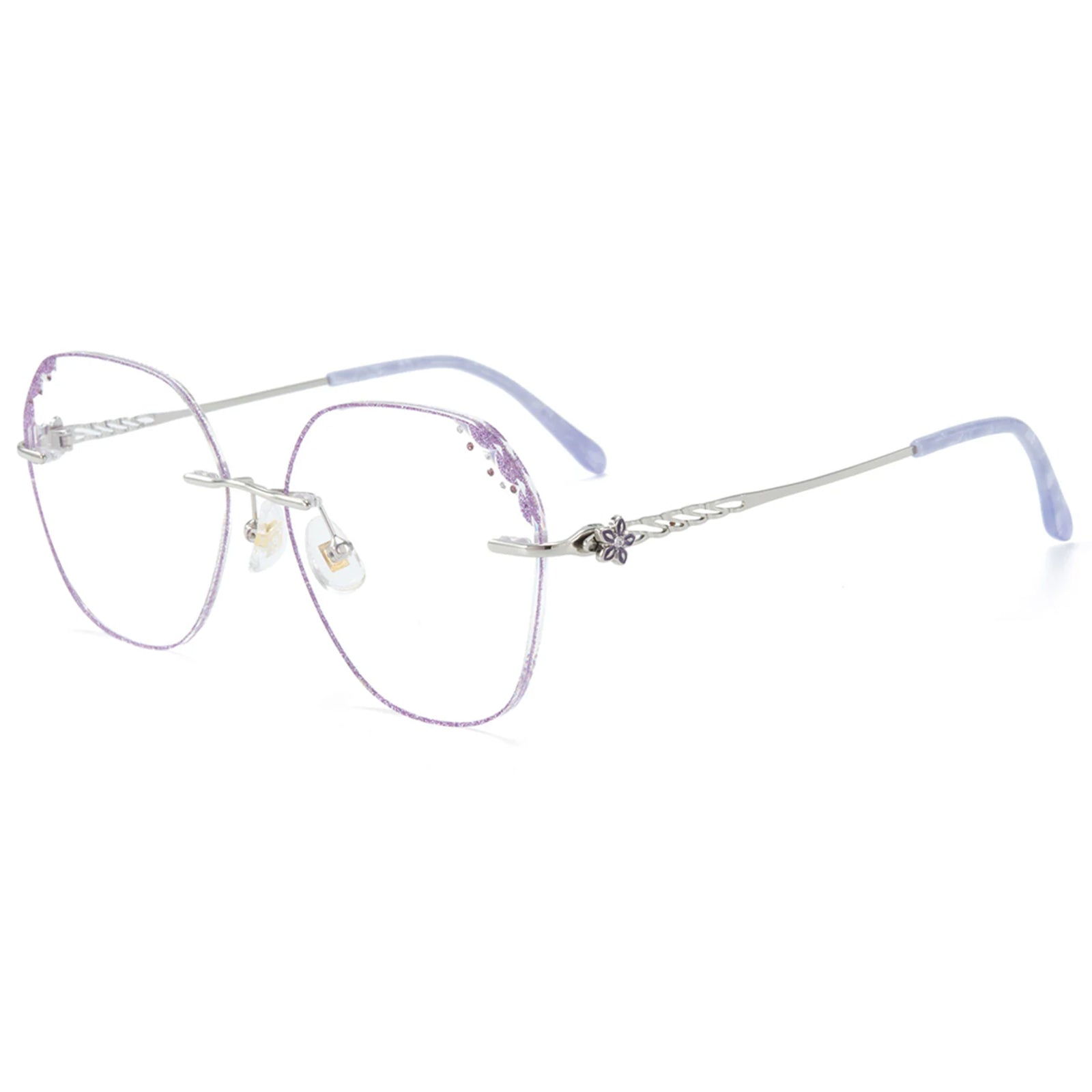 Teresa ist mit lila Kanten und schillernden Diamanten auf den Objektiven geschmückt, ergänzt durch elegante lila Blüten auf den Tempeln. Dieses Design strahlt ein Gefühl von Luxus und Verfeinerung aus und macht diese Brille zum Inbegriff des anspruchsvollen Charme.