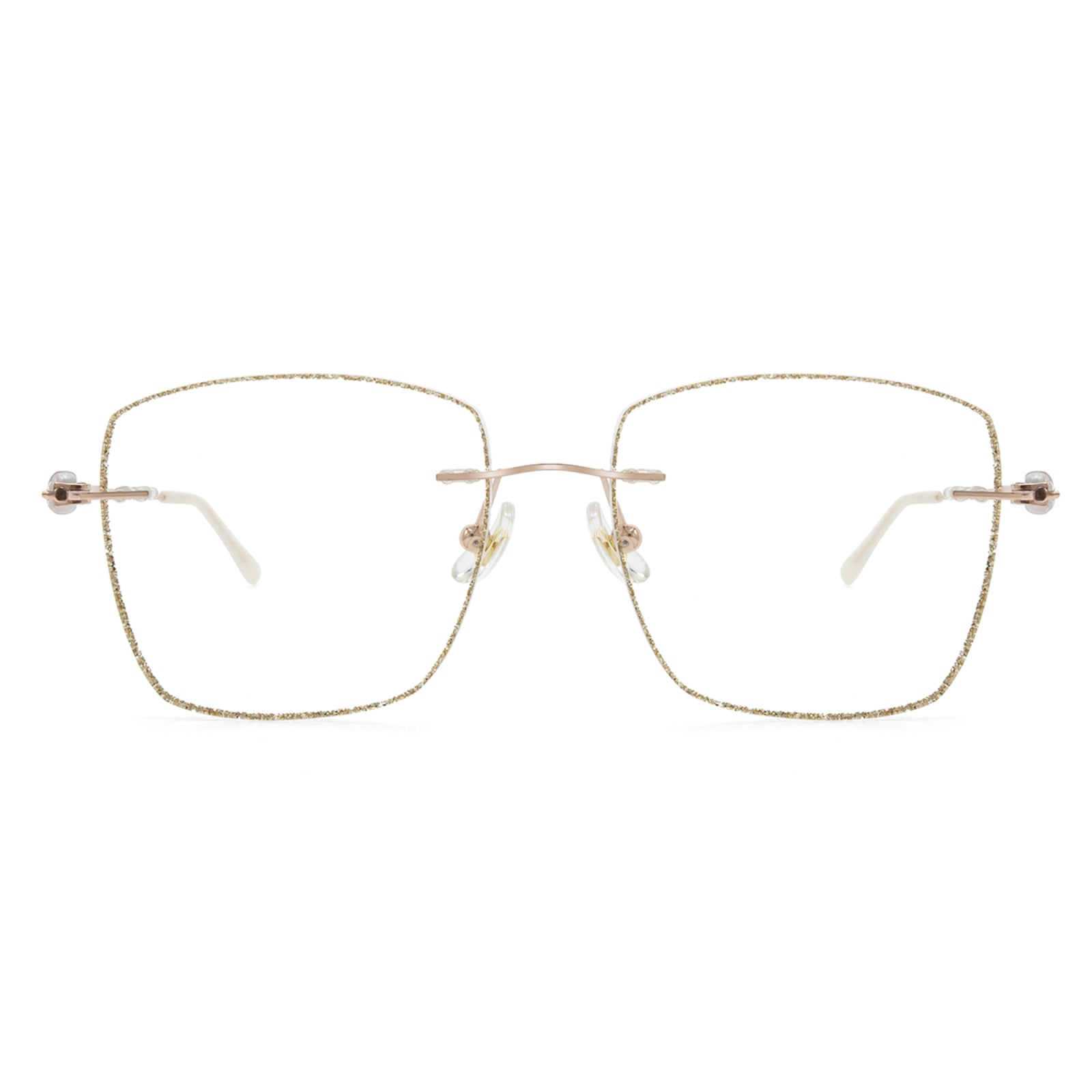 Square Randless Brille definieren die Raffinesse mit glitzernden Linsenkanten neu, die bei jeder Bewegung funkeln. Der Tempel strahlt einen königlichen Charme aus und enthält ein von der königlicher Ästhetik inspirierter Design. Perfekt für diejenigen, die ihrem alltäglichen Stil einen Hauch von Majestät verleihen möchten, sind diese Brillen sowohl schillernd als auch angesehen.