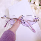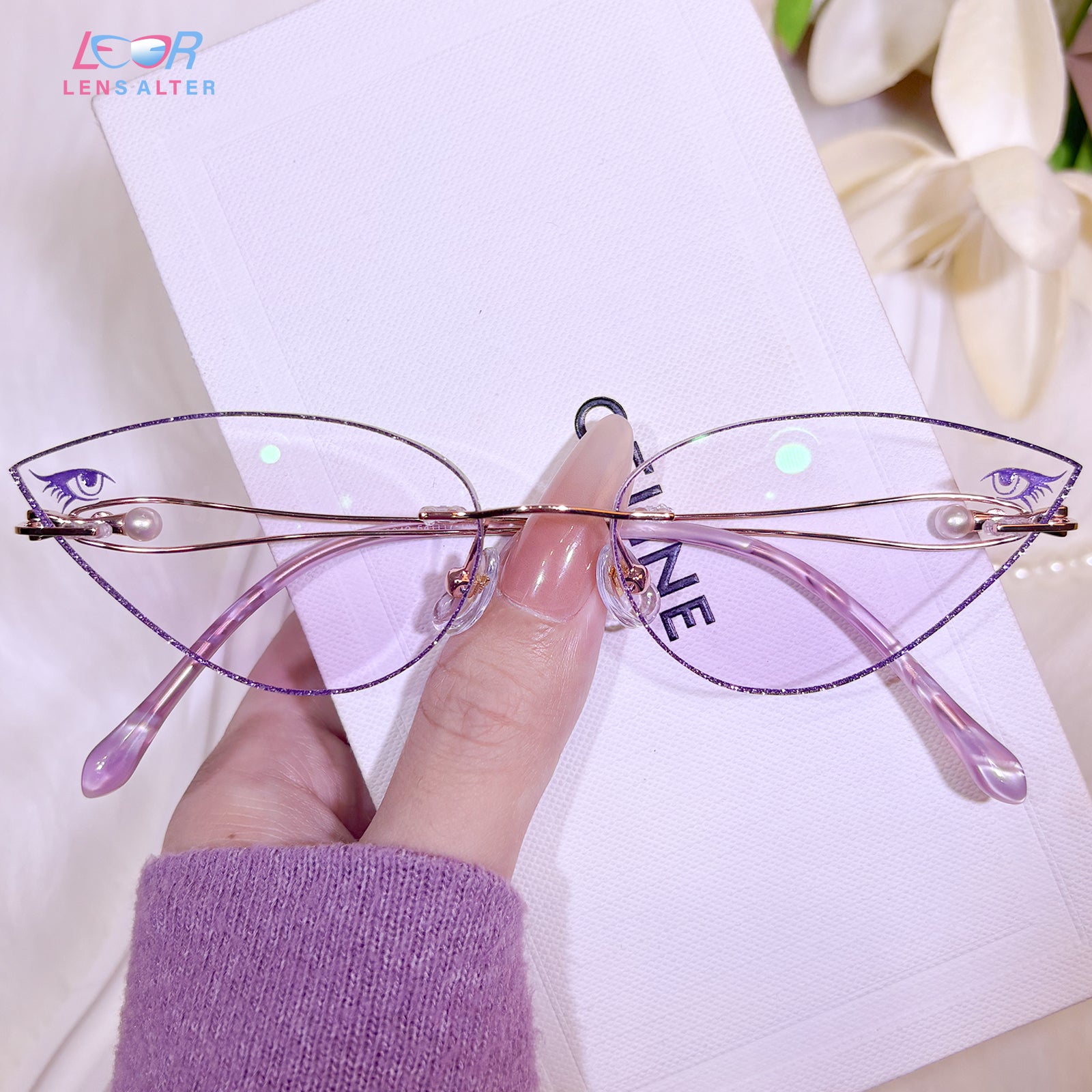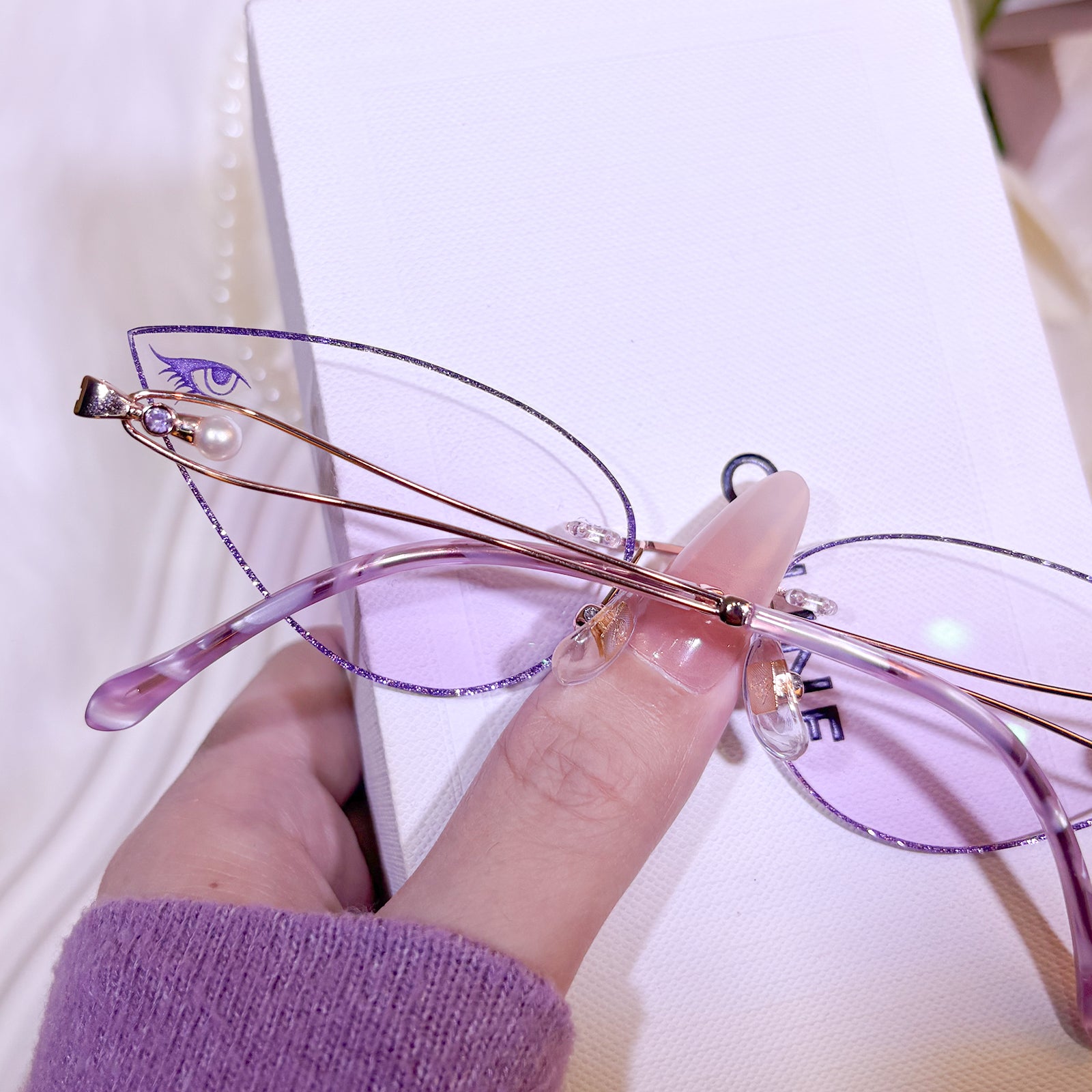 | Exclusive Design | A vision of delicate mystery, these purple metal glasses frame the world with ethereal charm. The witch-eye details at the lens corners seem to hold secrets of moonlit realms, while the lightweight frameless construction ensures effortless grace. For the modern enchantress who believes elegance is its own kind of spell.