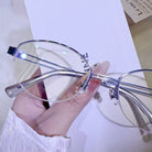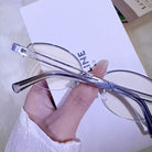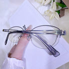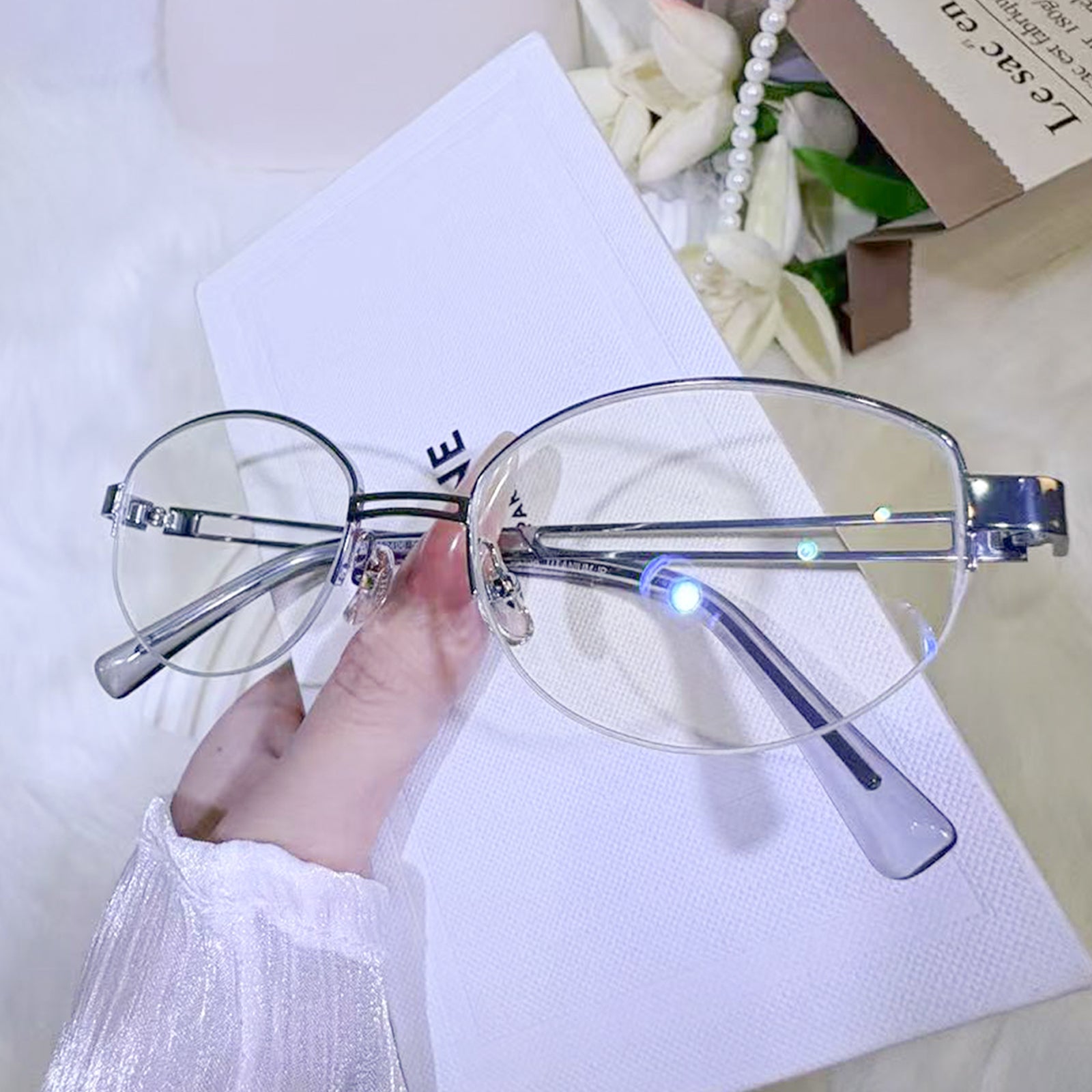 These half-rim glasses are crafted from sleek titanium, offering a modern and stylish look with a bold, avant-garde edge. The minimalist frame design highlights sophistication while maintaining a lightweight, comfortable fit.