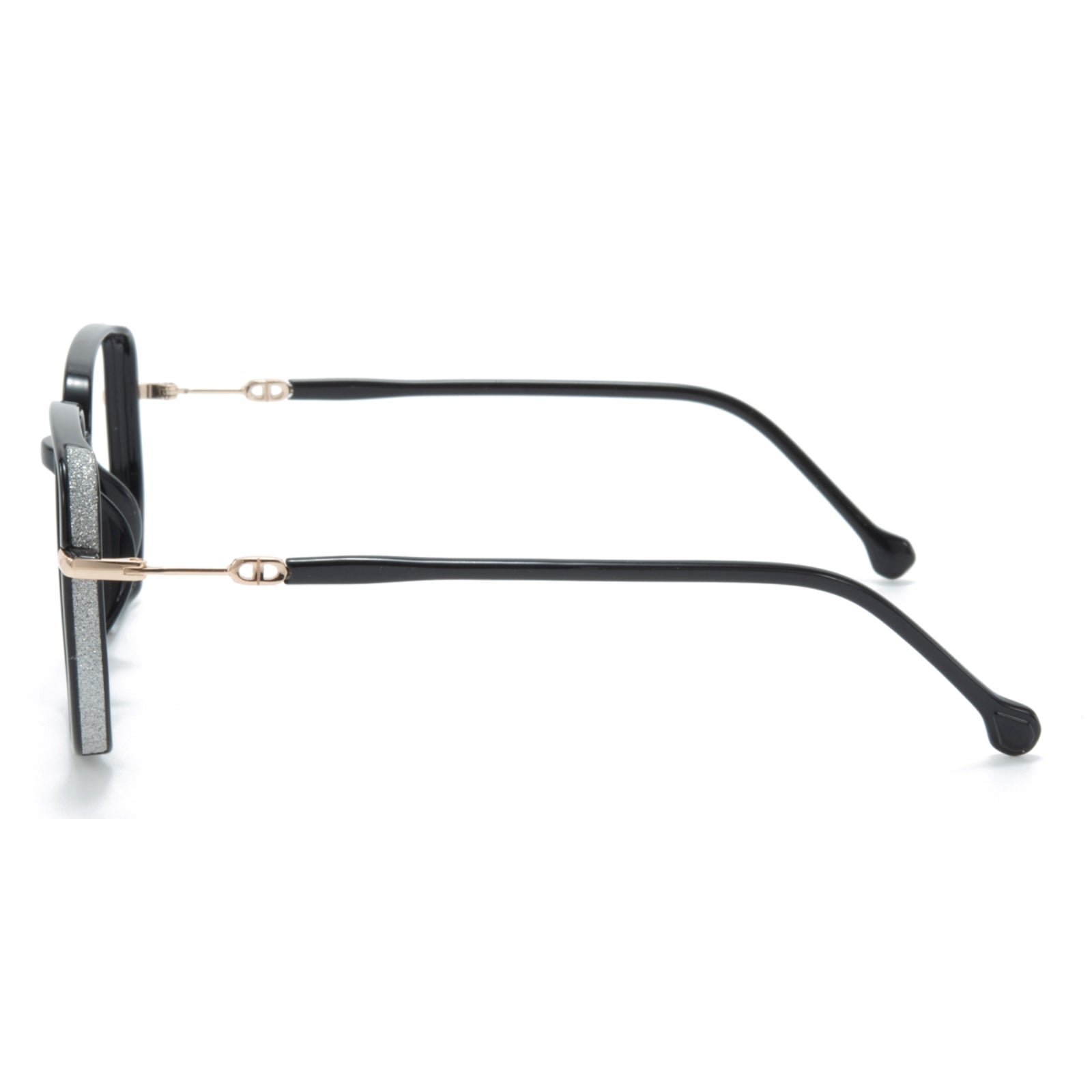 Quadratische und breite Brille mit glitzerischen Rahmen. Sie wurden für Trendsetter entwickelt, die gerne glänzen, und bieten eine mutige und modische Aussage, die auffällt. Diese Brille ist perfekt für die Erhöhung alltäglicher Outfits oder Ergänzung schicker Ensembles und ist ein Muss für das stile Bewusstsein.