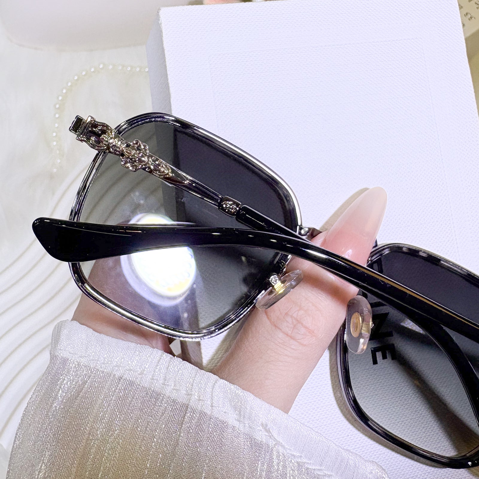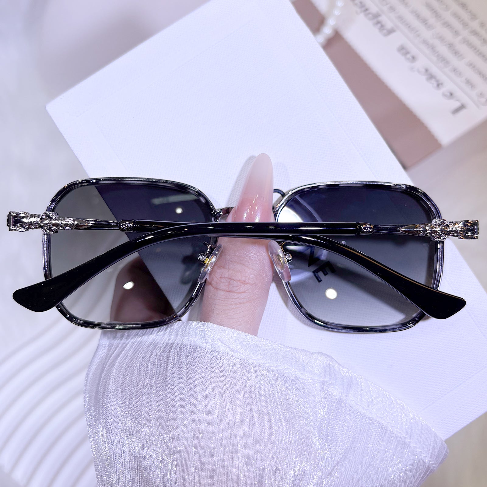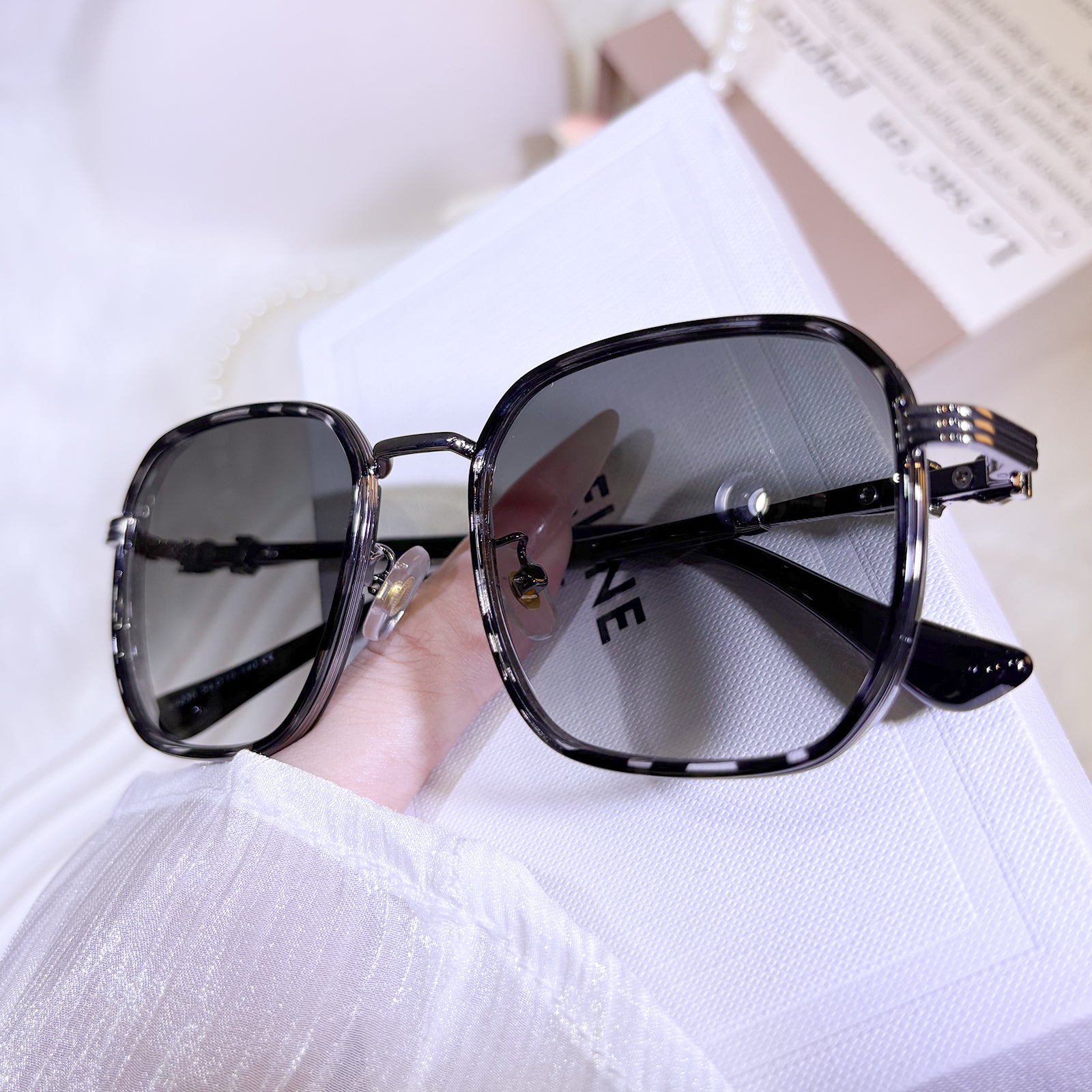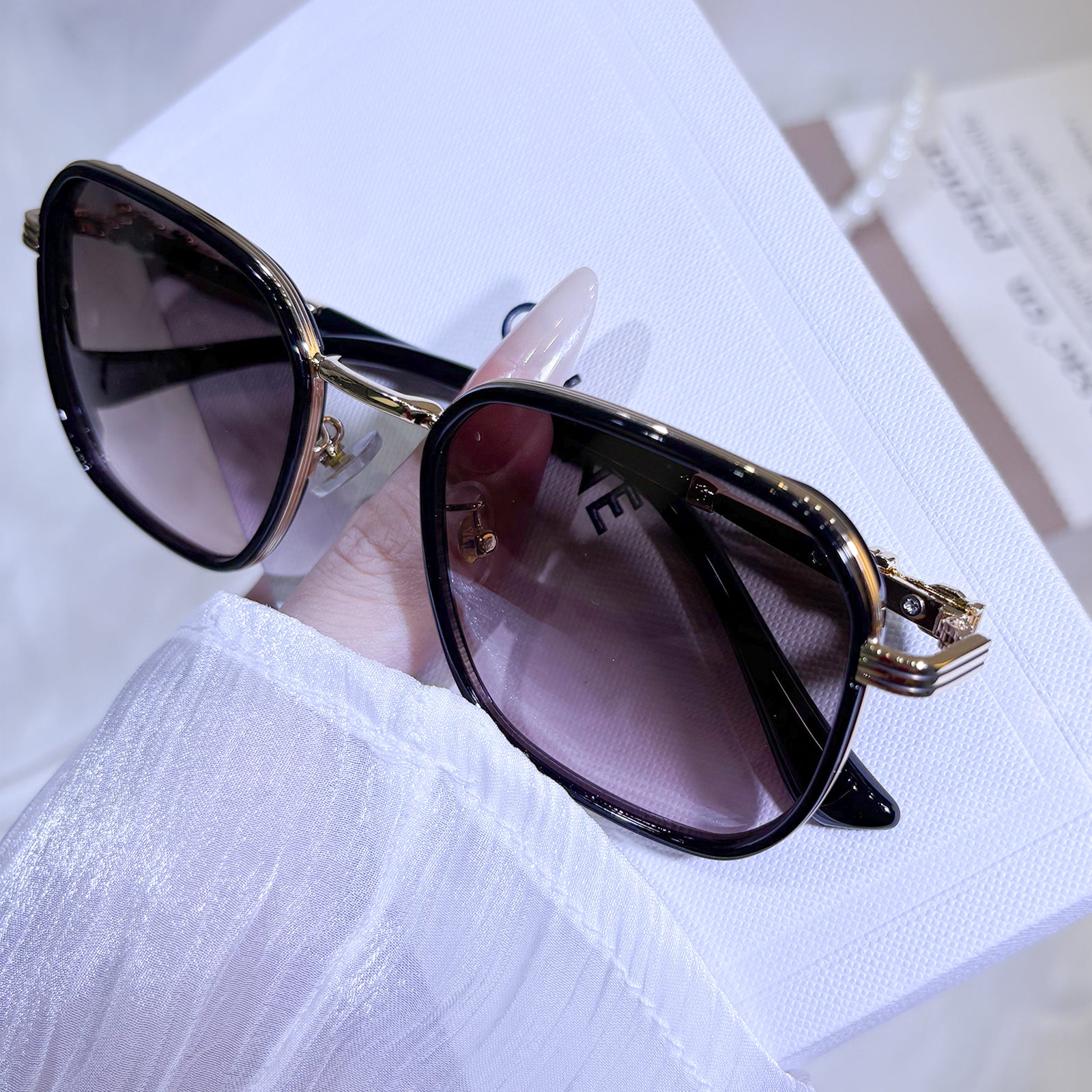 These sunglasses feature sleek temples adorned with striking, bold accents that make a strong style statement. Crafted from a combination of metal and TR materials, they offer both durability and comfort. Available in three versatile colors to match your personal vibe.