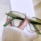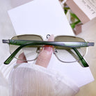 These silver and green mixed sunglasses bring a bold futuristic vibe, combining sleek metal with TR material for a lightweight, high-impact look. Perfect for fashion lovers looking to create standout styling moments. Ideal for those who dare to be different.