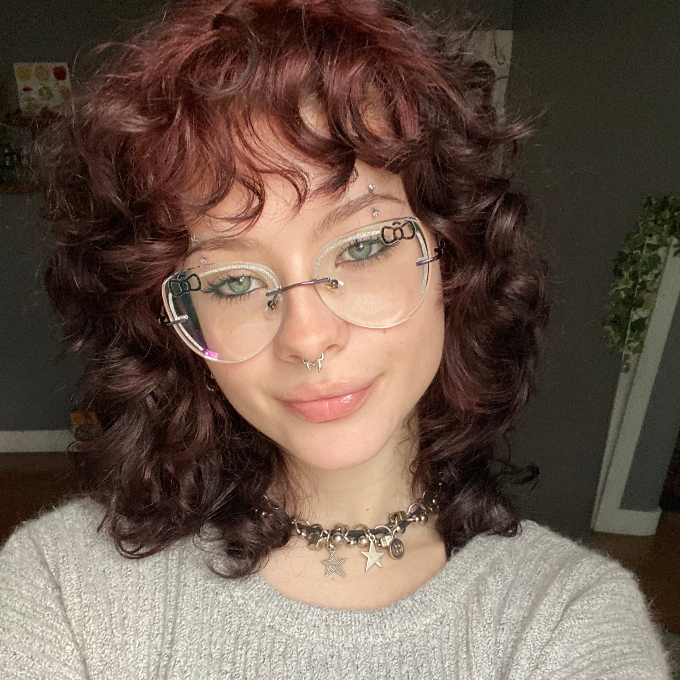 Round glasses frames soften the sharp angles and length of an oblong face. Their curves create a more balanced look by breaking up the length and adding width to the face.