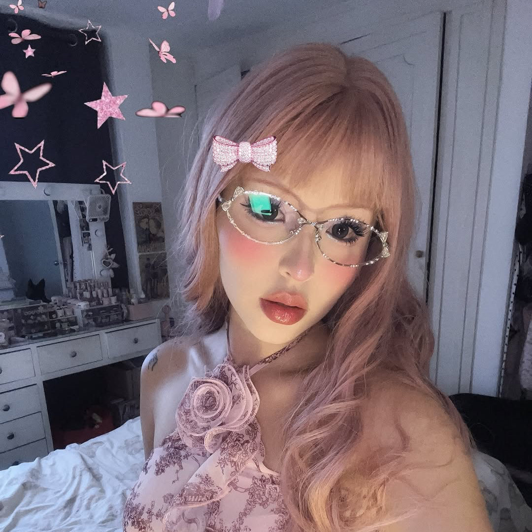 These oval-shaped women’s glasses are adorned with sparkling rhinestones and charming bow accents, making them shimmer beautifully from day to night. Crafted with a sleek metal frame, they exude glamour and elegance, perfect for adding a dazzling touch to any look.