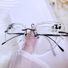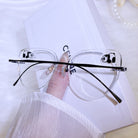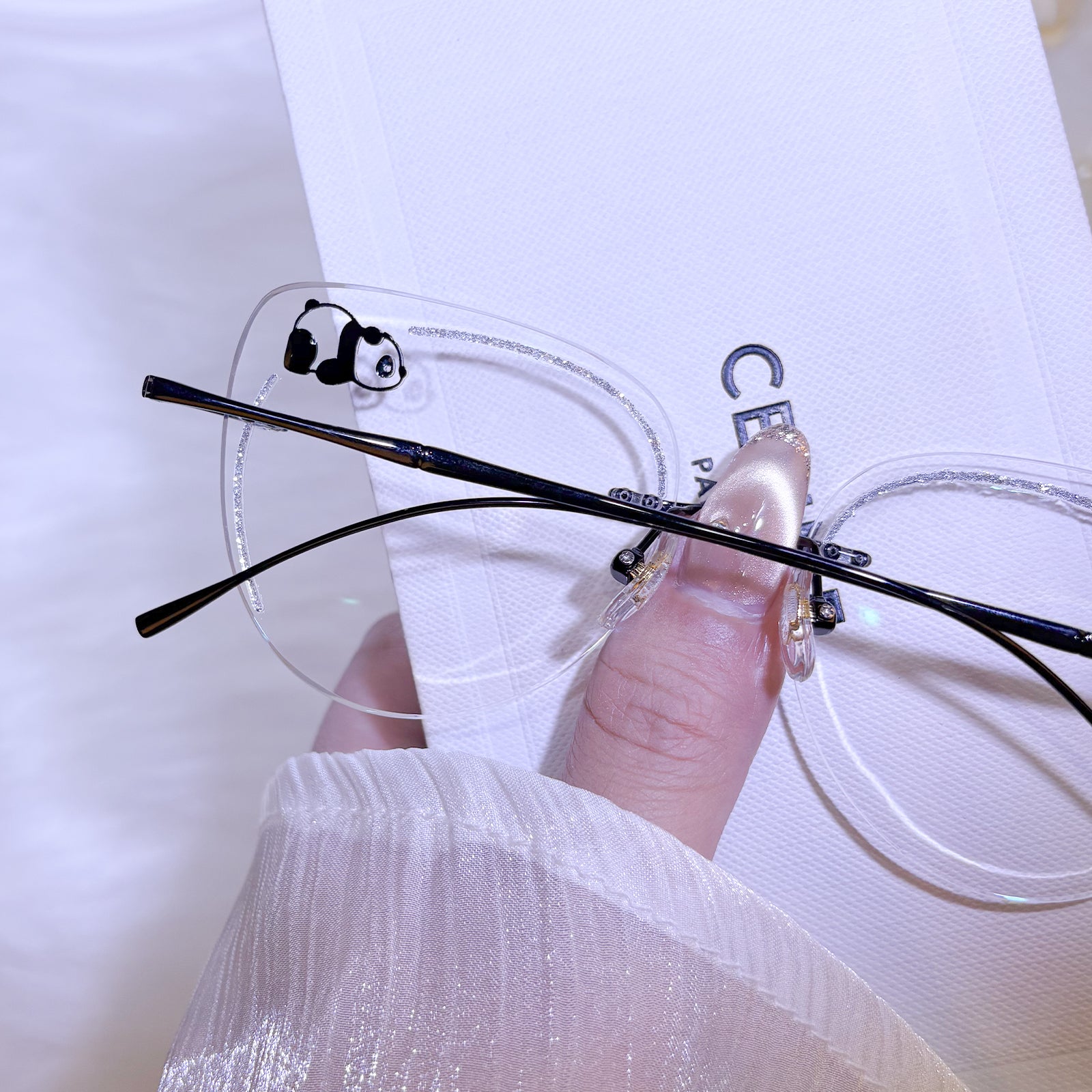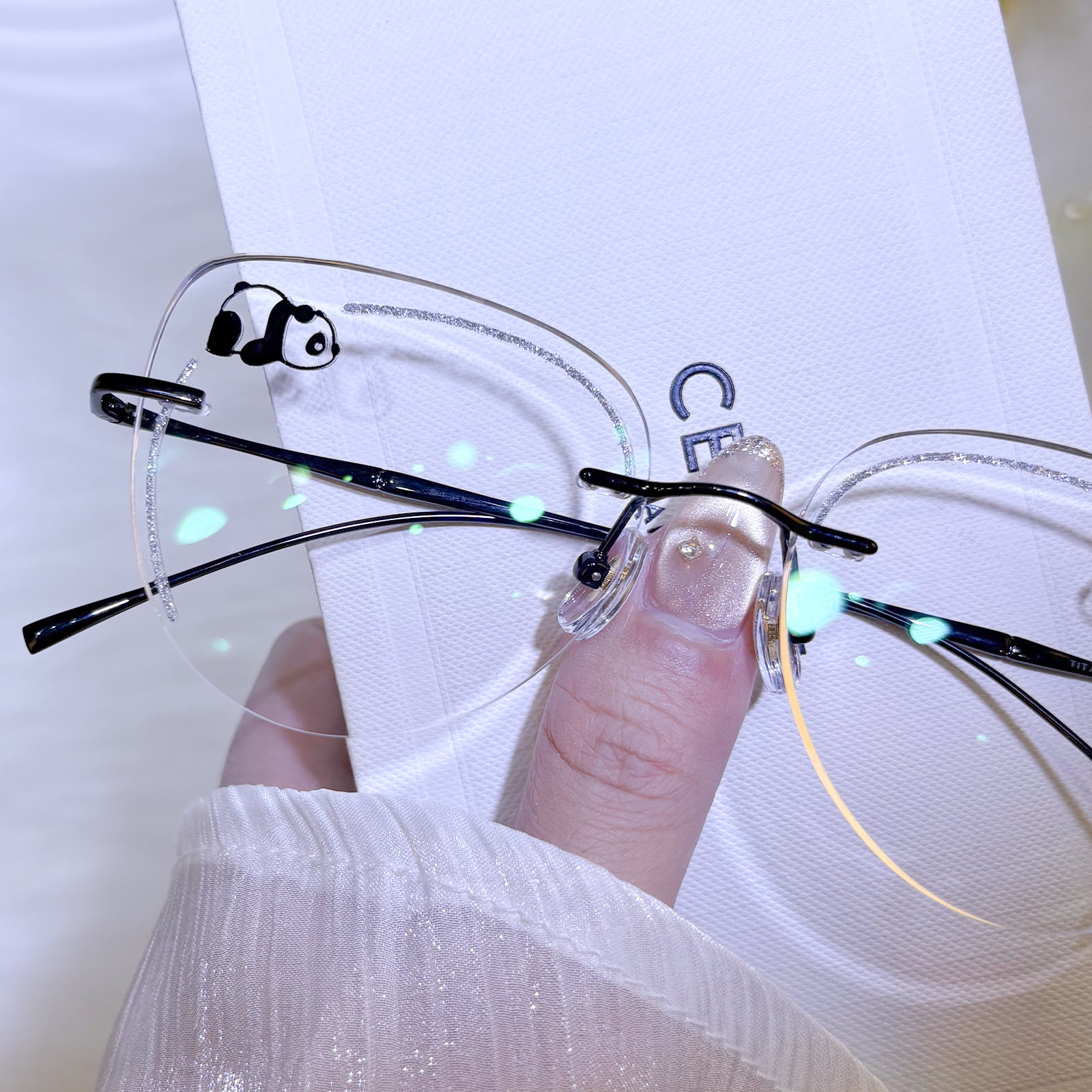 | Exclusive Design | Designed with an irresistibly cute panda-inspired shape, this black rimless eyewear delivers a timeless and classic look with a playful twist. The all-black colorway keeps it sleek and versatile, while the adorable design adds a touch of charm—perfect for anyone who loves cute details with everyday wearability.
