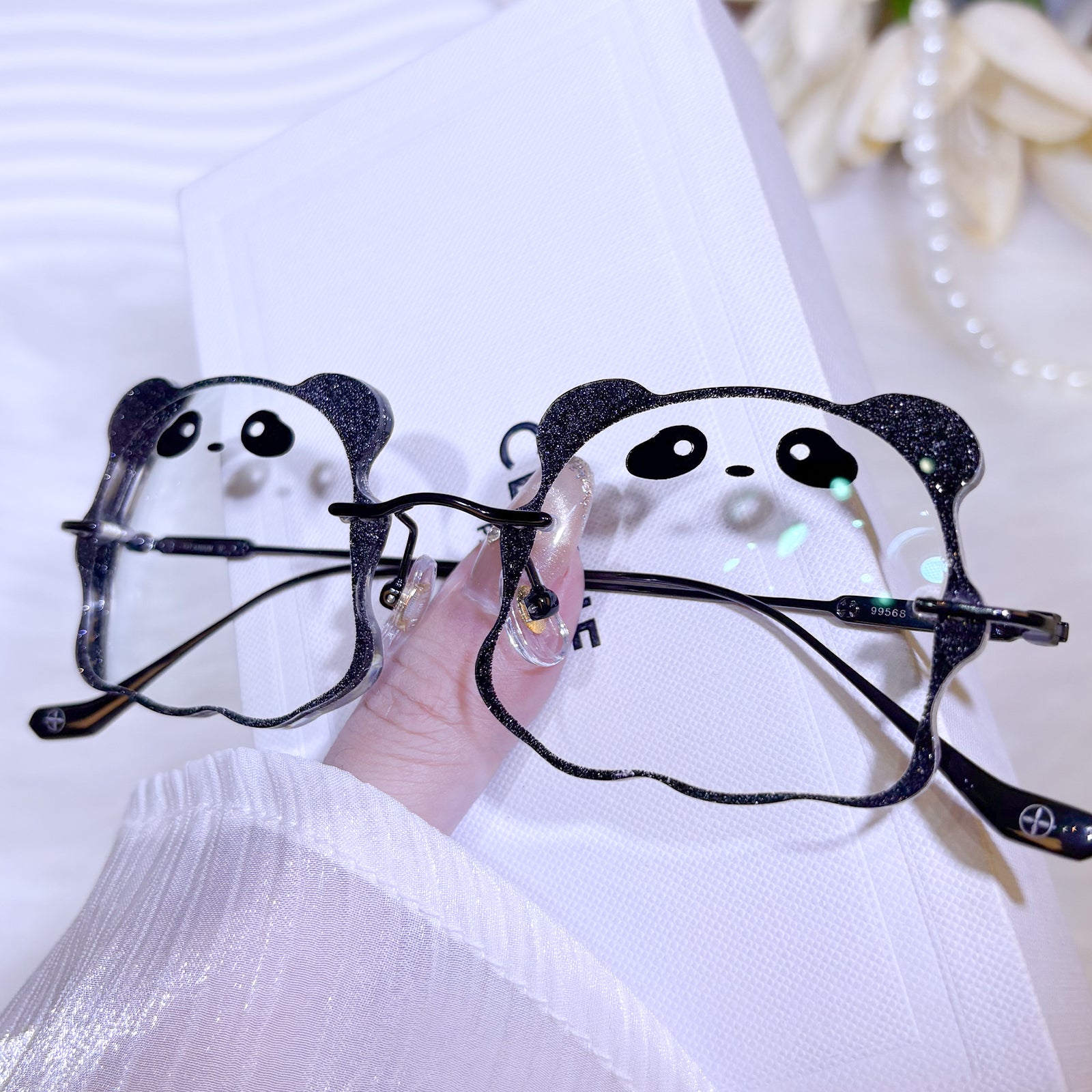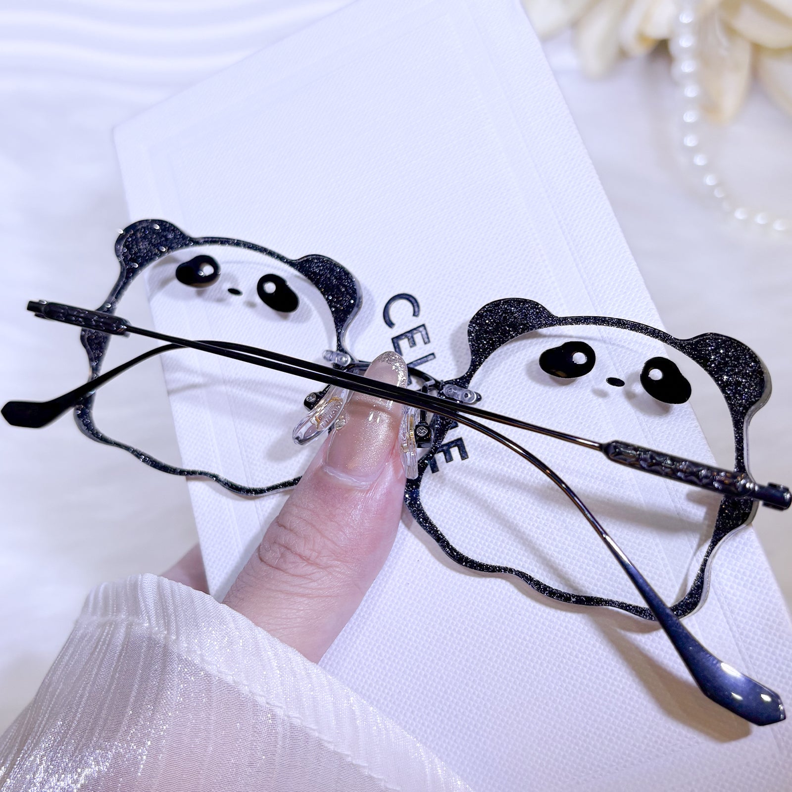 | Exclusive Design | Irresistibly cute and full of charm, this panda-shaped rimless eyewear features an all-black colorway for a classic, versatile look. The lenses are designed in the shape of an adorable little panda face, complete with tiny rounded ears that make the silhouette extra playful. Sweet, fun, and eye-catching — the perfect accessory for anyone who loves cute statement pieces.