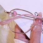 This pair of geometric metal-frame glasses is a perfect blend of modern chic and adorable charm. The standout feature? The ultra-cute bunny decorations on the temples — playful, sweet, and full of personality. Lightweight and stylish, these glasses are designed for daily wear, adding a touch of whimsy and girlish fun to any outfit. Ideal for those who love a soft, youthful aesthetic with a dash of unique flair.