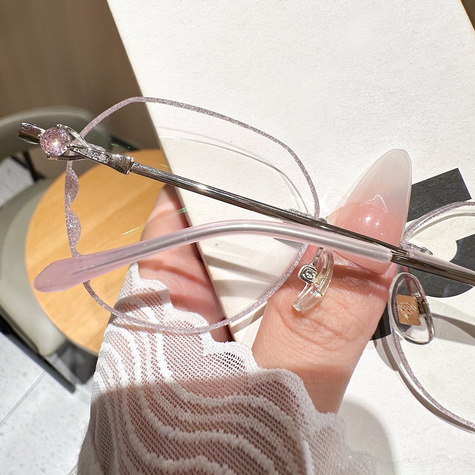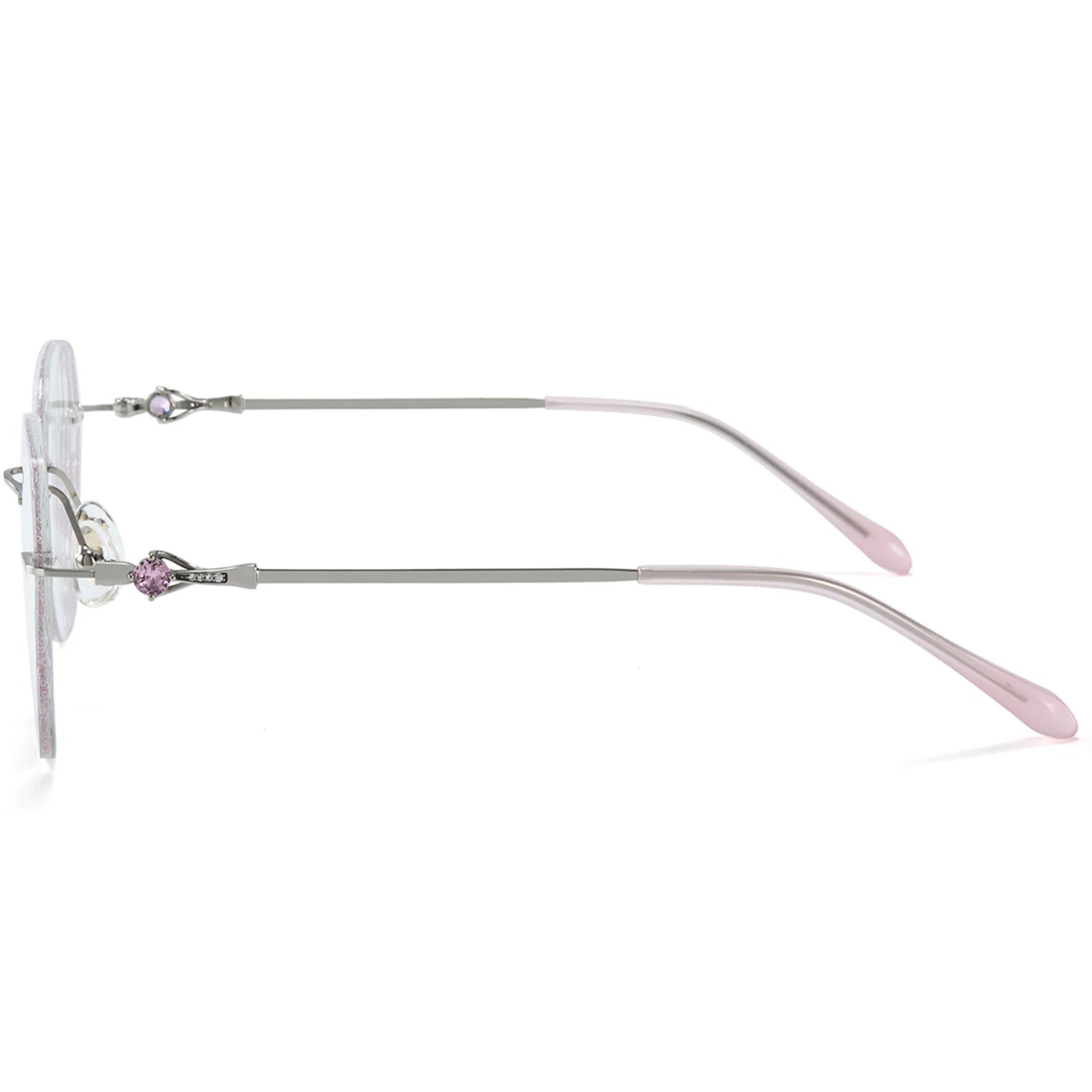 Elevate your style with Catherine, our elegant rimless eyeglasses crafted for the modern young woman. Featuring a sleek pink metal frame and a unique pink bead on the temples, these glasses blend sophistication with a playful touch. Lightweight and comfortable, Catherine is perfect for all-day wear, adding a touch of femininity to any look.