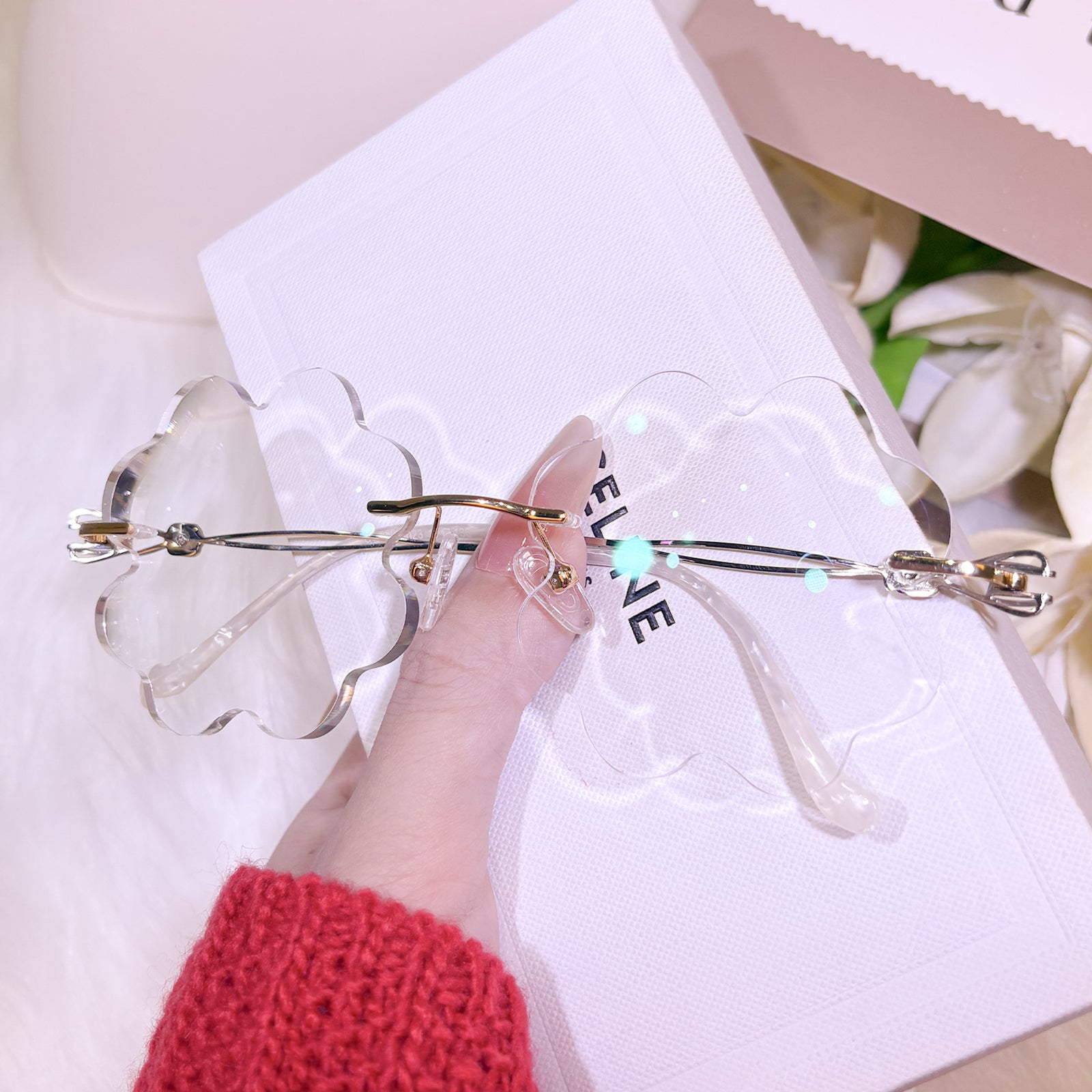 | Exclusive Design | Where fortune meets modern design, these frameless metal glasses capture the clover's grace in gleaming white. The lightweight construction allows the symbolic form to float effortlessly before the eyes, offering a daily reminder of life's magic through intentionally refined aesthetics—for the woman who carries her charm with elegant subtlety.