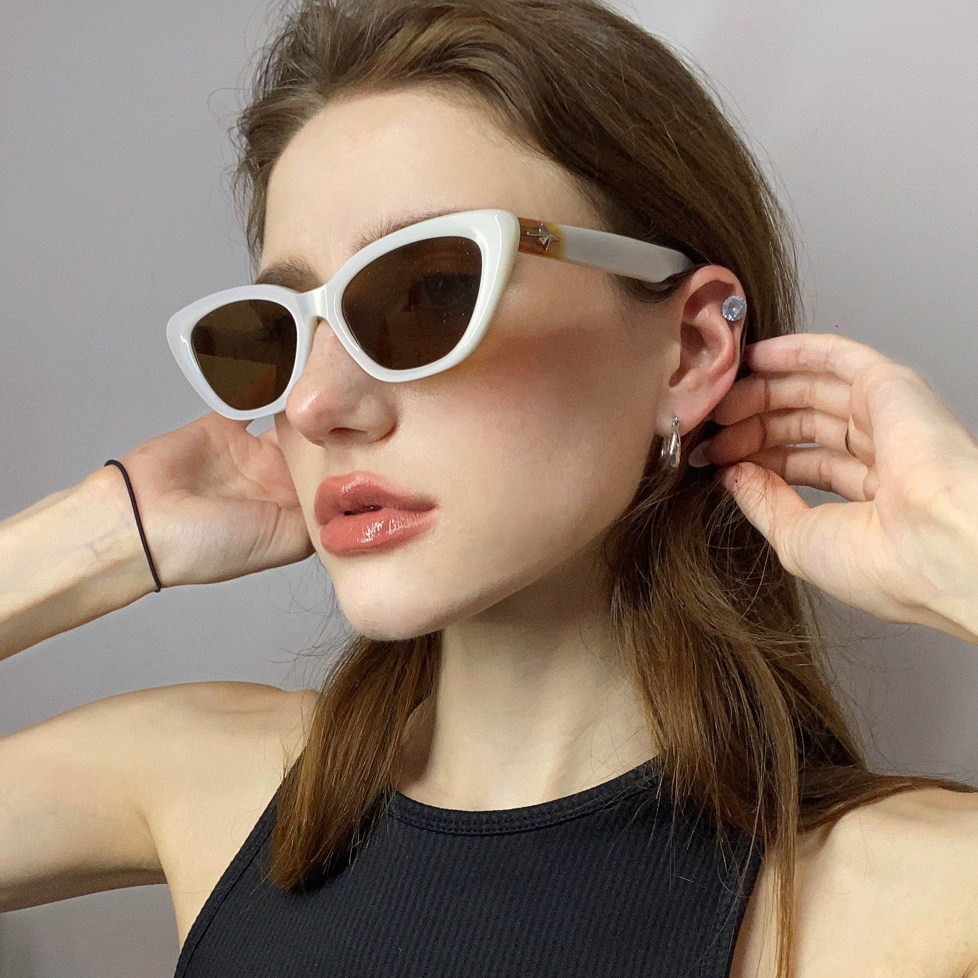 White and Tortoiseshell Cat-Eye Sunglasses – the perfect choice for stylish, confident girls. Featuring a bold cat-eye silhouette that blends classic tortoiseshell with fresh white accents, these sunglasses bring a playful yet edgy look. The temples are adorned with a pearlescent detail, adding a soft shimmer to the cool, chic design.