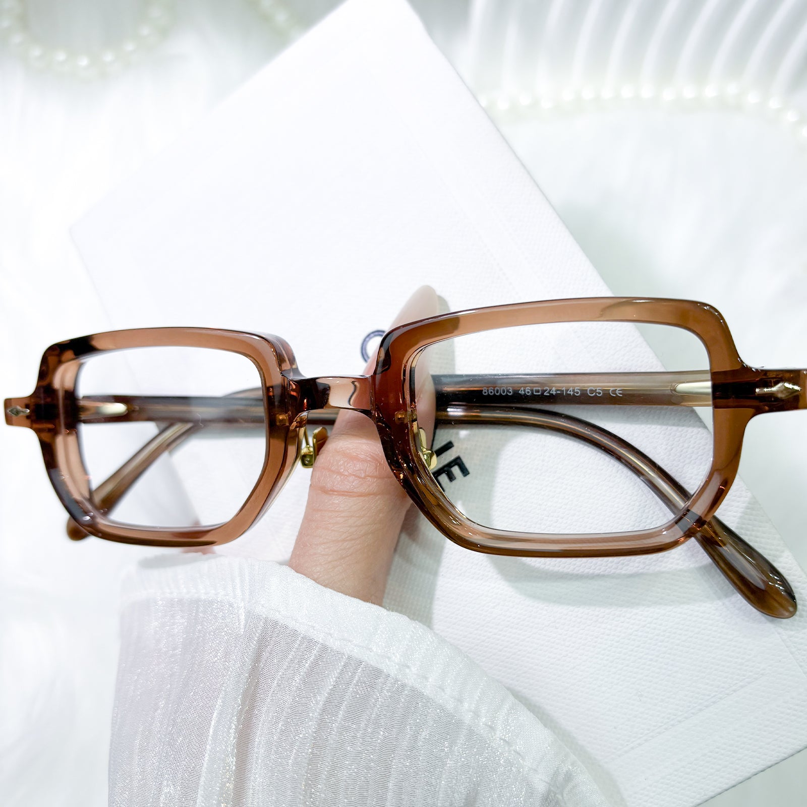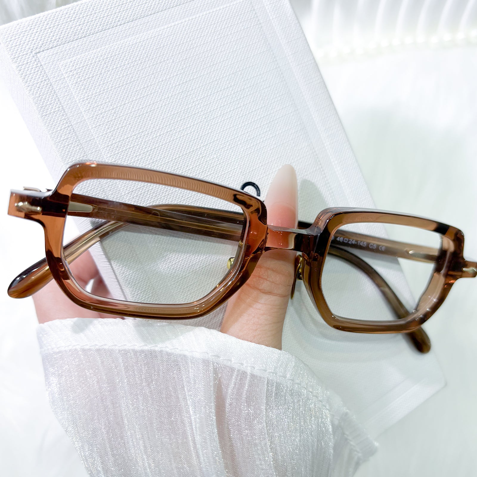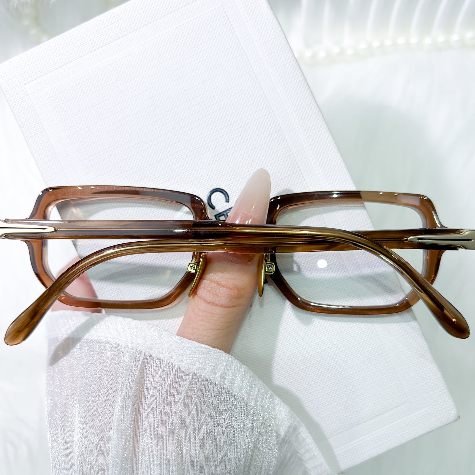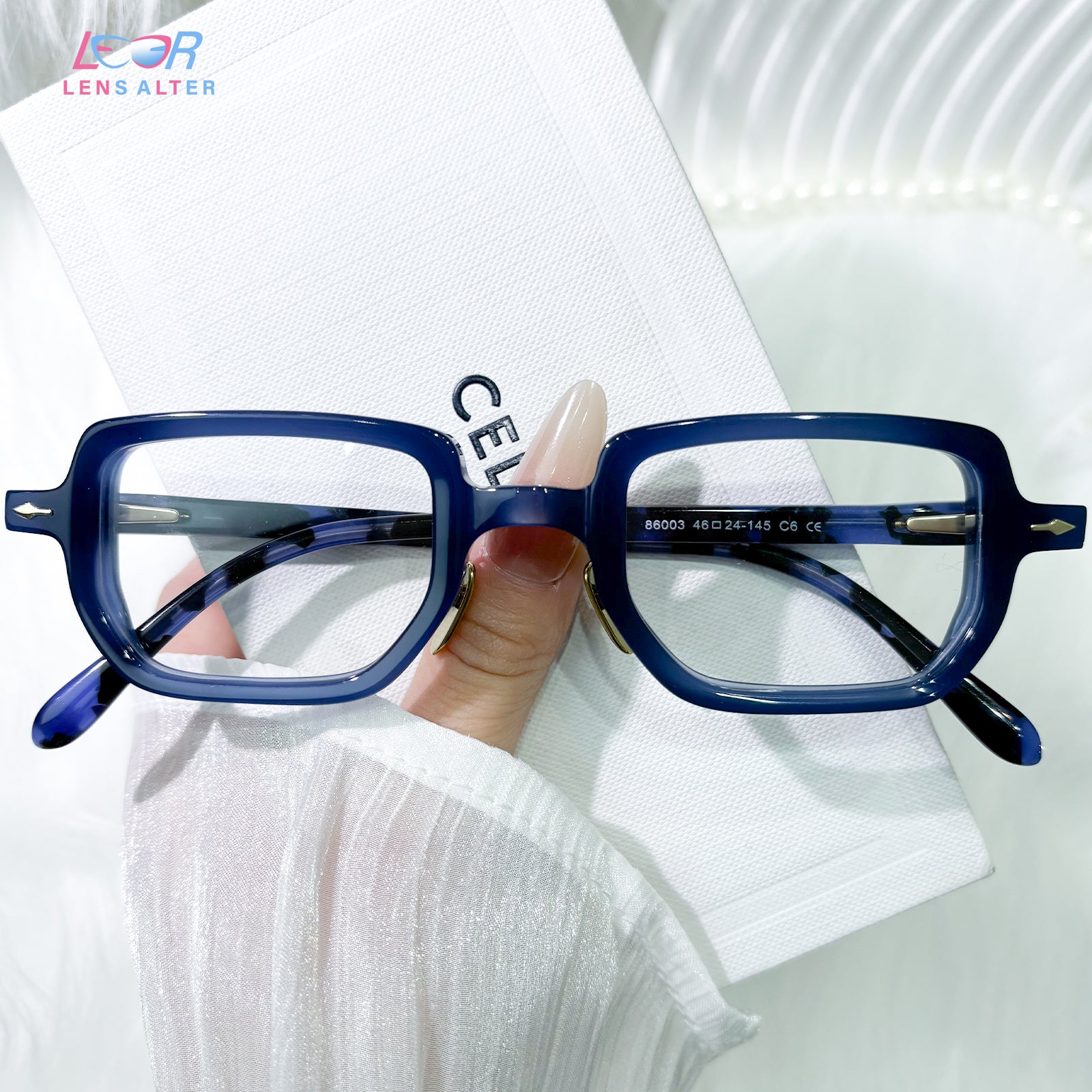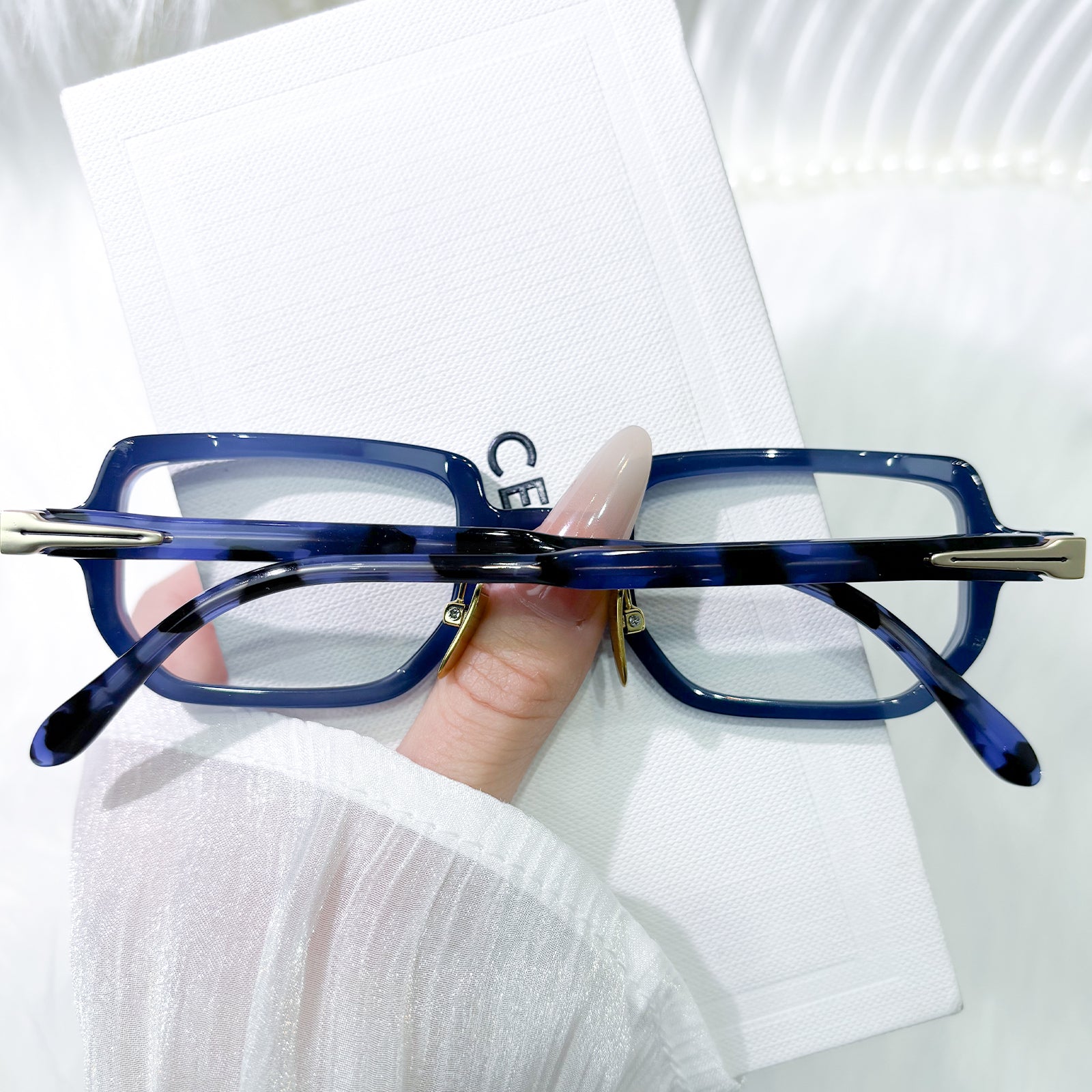 Where bold geometry meets thoughtful contrast, this square glasses frame presents deep ocean blue alongside earthy desert brown in a harmonious TR construction. The cool and warm tones create a visual dialogue of balance and individuality—designed for the woman who uses color as an extension of her dynamic personality and confident style.