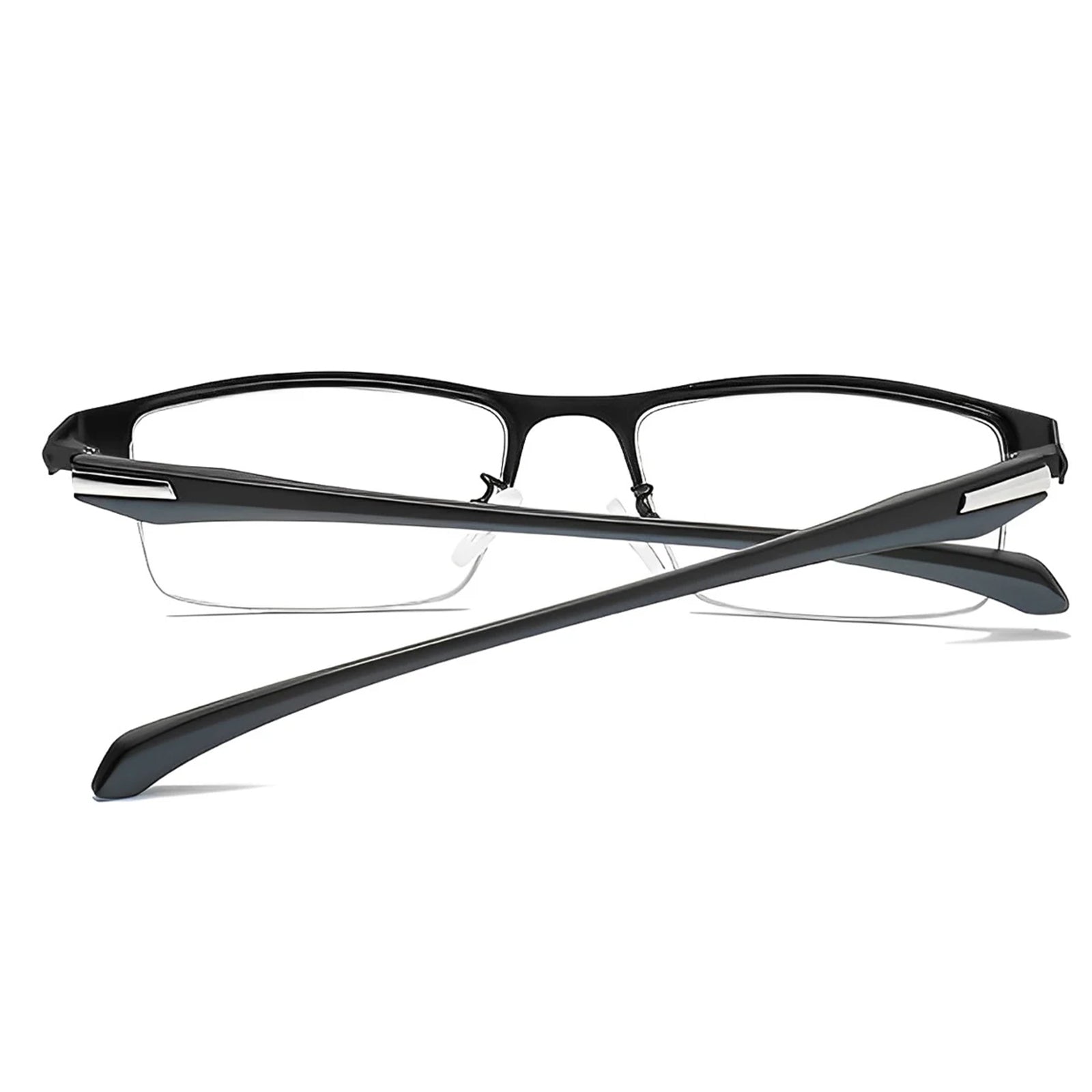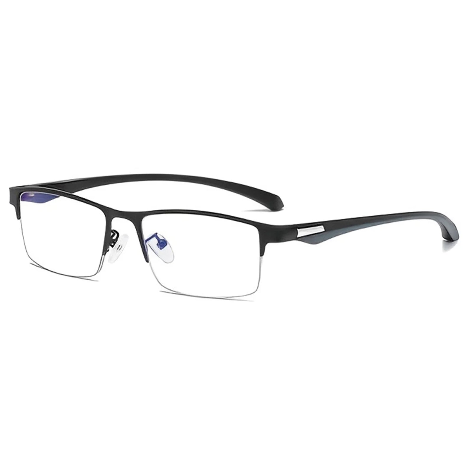 Browline eyeglass frames, blending urban charm with impeccable simplicity. The sleek black and silver color combination exudes sophistication, while the design achieves a perfect balance of modern style and classic elegance. Elevate your look with these effortlessly chic frames.