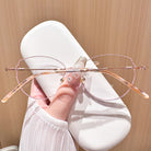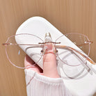 Add a touch of refined elegance to your look with these stunning rose gold rimless glasses. Featuring a uniquely shaped lens, they blend sophistication with a modern twist, creating a flattering and graceful silhouette. Perfect for those who appreciate understated luxury, these glasses are an ideal accessory for any occasion, offering both style and versatility.