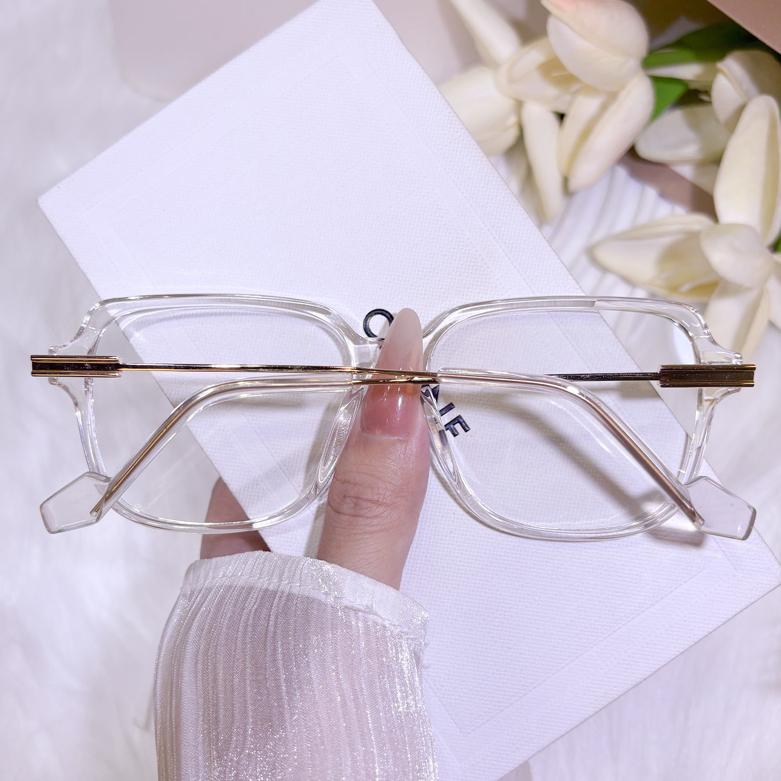 This women’s frame features a transparent TR design paired with sleek golden temples, offering a stylish and versatile look. Lightweight yet chic, it perfectly balances modern fashion with everyday wearability, making it an easy match for any outfit.