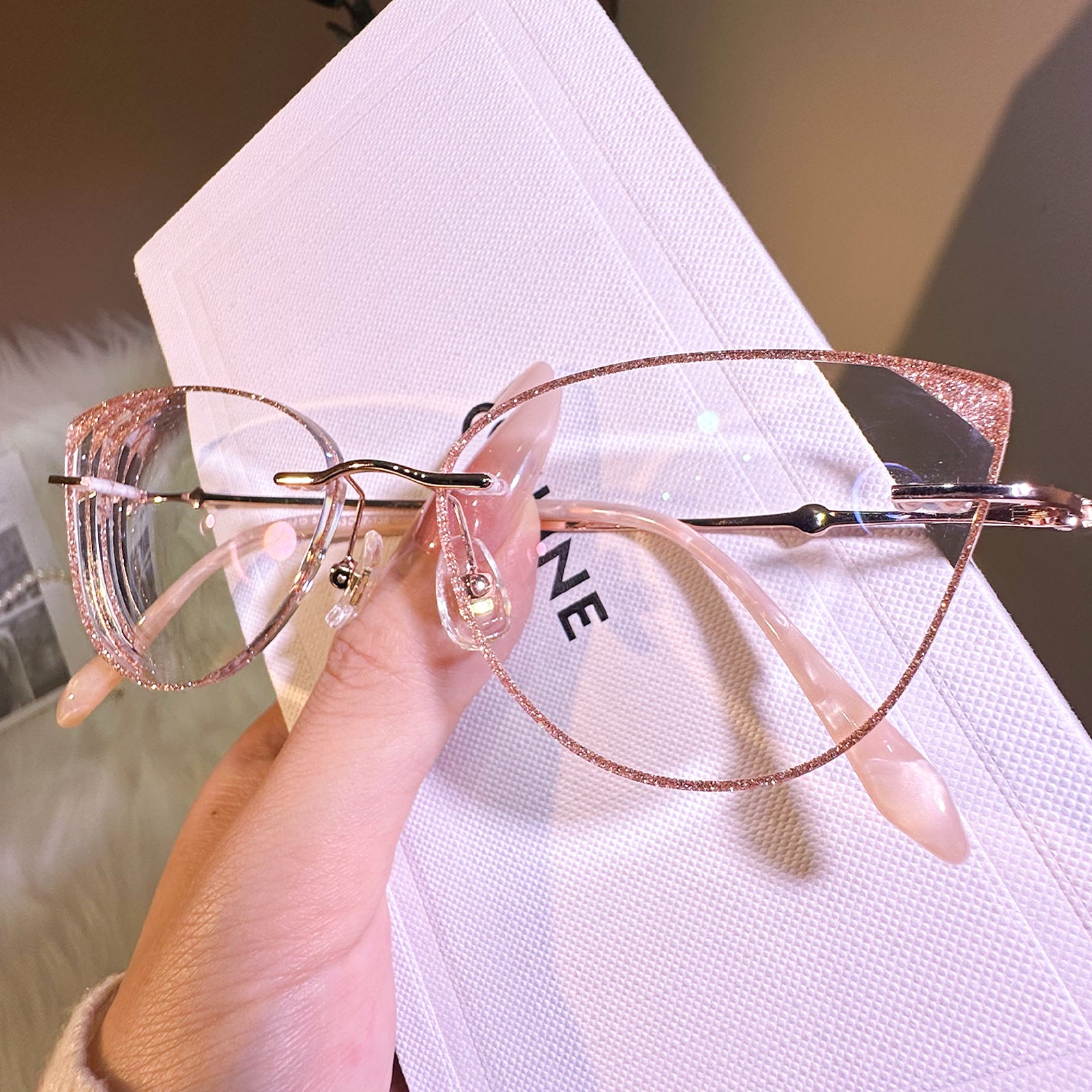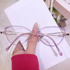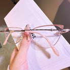Rimless cat-eye glasses redefine elegance with their sleek design and dazzling gemstone-adorned temples. Chic, luxurious, and effortlessly glamorous—perfect for making a bold fashion statement!
