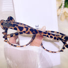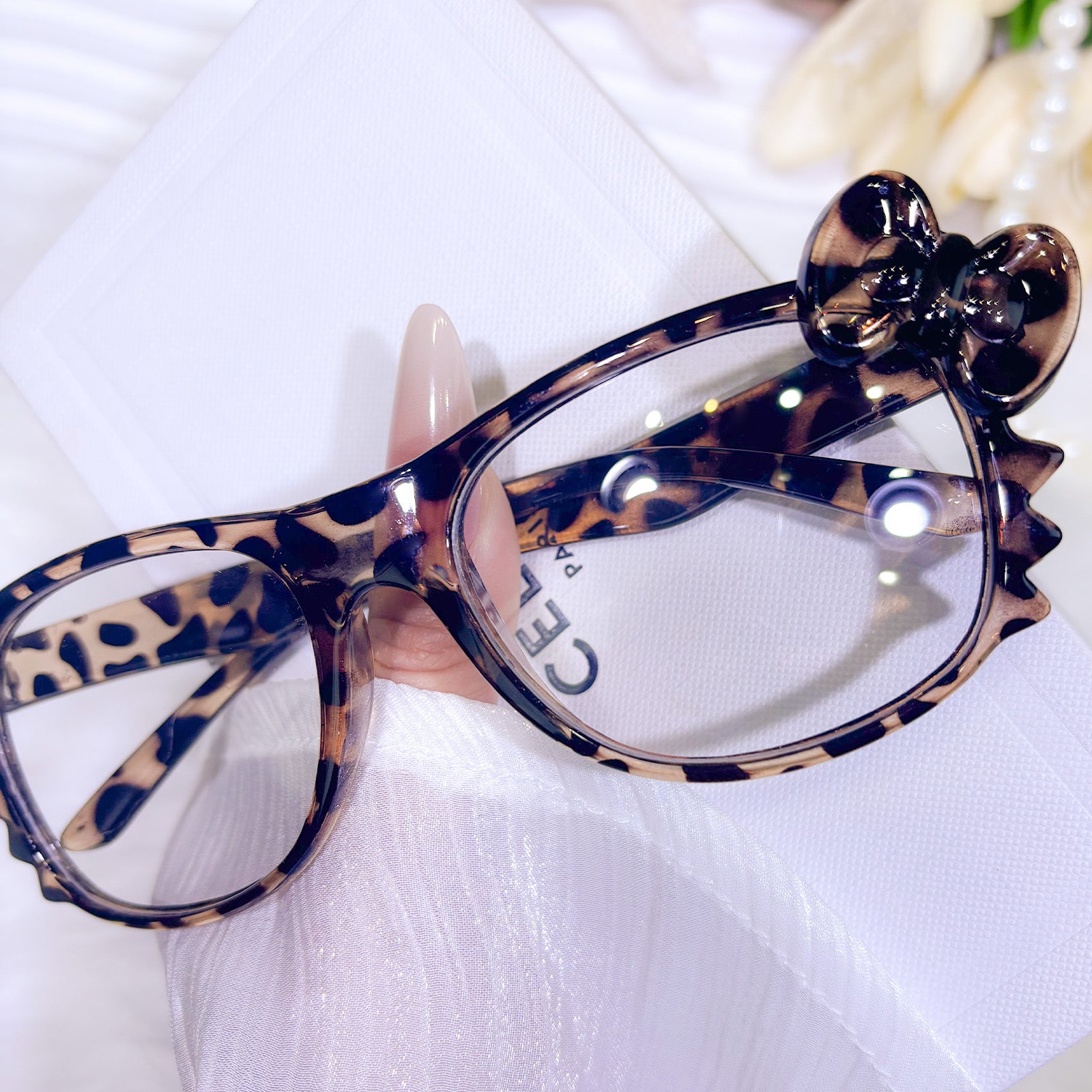 Unleash your playful side with these adorable Hello Kitty eyeglasses. Featuring a fun anime-inspired leopard print design and a cute cartoon aesthetic, these retro-style frames combine kawaii charm with bold fashion.