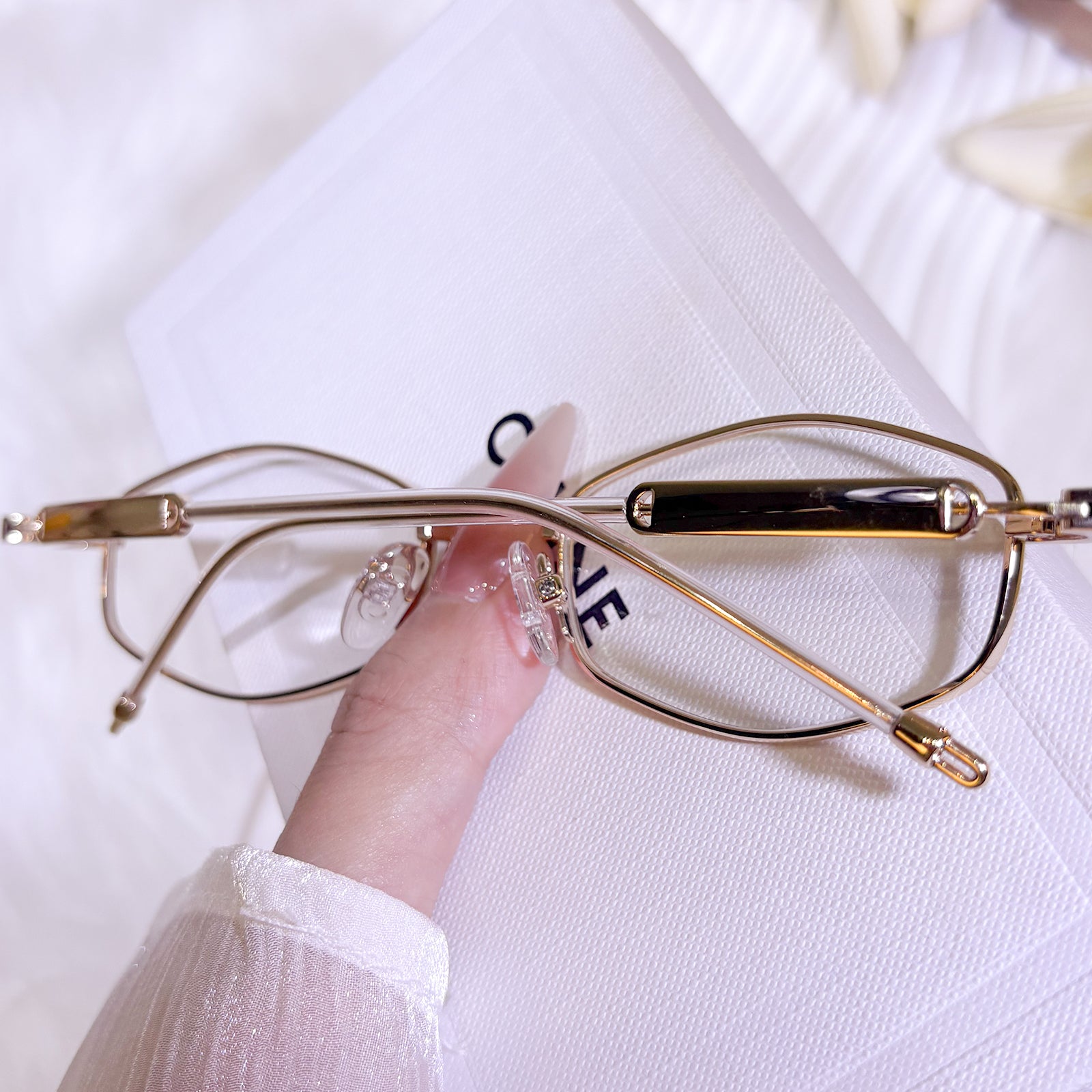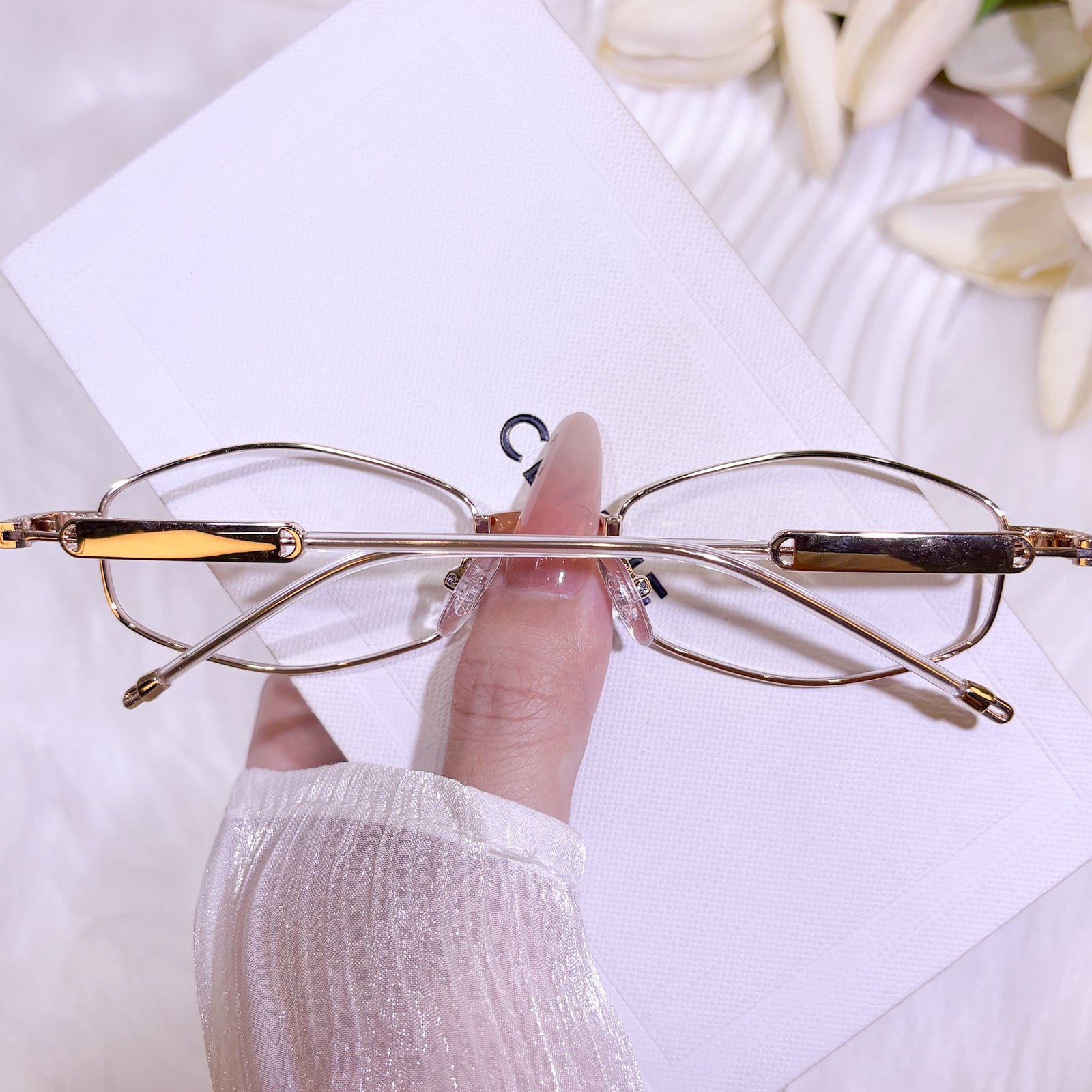These sleek geometric metal frames capture the essence of Y2K futurism with a refined edge. The smooth, almost liquid-like texture of the metal exudes luxury, while the sharp, distinct silhouette delivers an unmistakably retro-futuristic vibe.