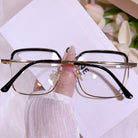 These square metal frames masterfully blend classic sophistication with contemporary flair. The striking contrast of the dual-tone finish creates a bold, fashion-forward statement while maintaining a timeless versatility. Their structured geometric shape adds definition to the face, offering a perfect balance of retro charm and modern edge. Ideal for elevating both professional and casual ensembles with intelligent style.
