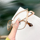Edgy and full of attitude, these metal cat-eye glasses make a bold statement with their sharp lines and confident style. Perfect for those who love to stand out and show off their unique vibe.
