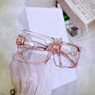 Crafted from lightweight Acetate material, these angular frames blend minimalist architecture with organic warmth. Available in artisanal tortoiseshell for timeless depth and translucent blush pink for ethereal softness, each silhouette offers structured elegance that feels both contemporary and delicately refined.