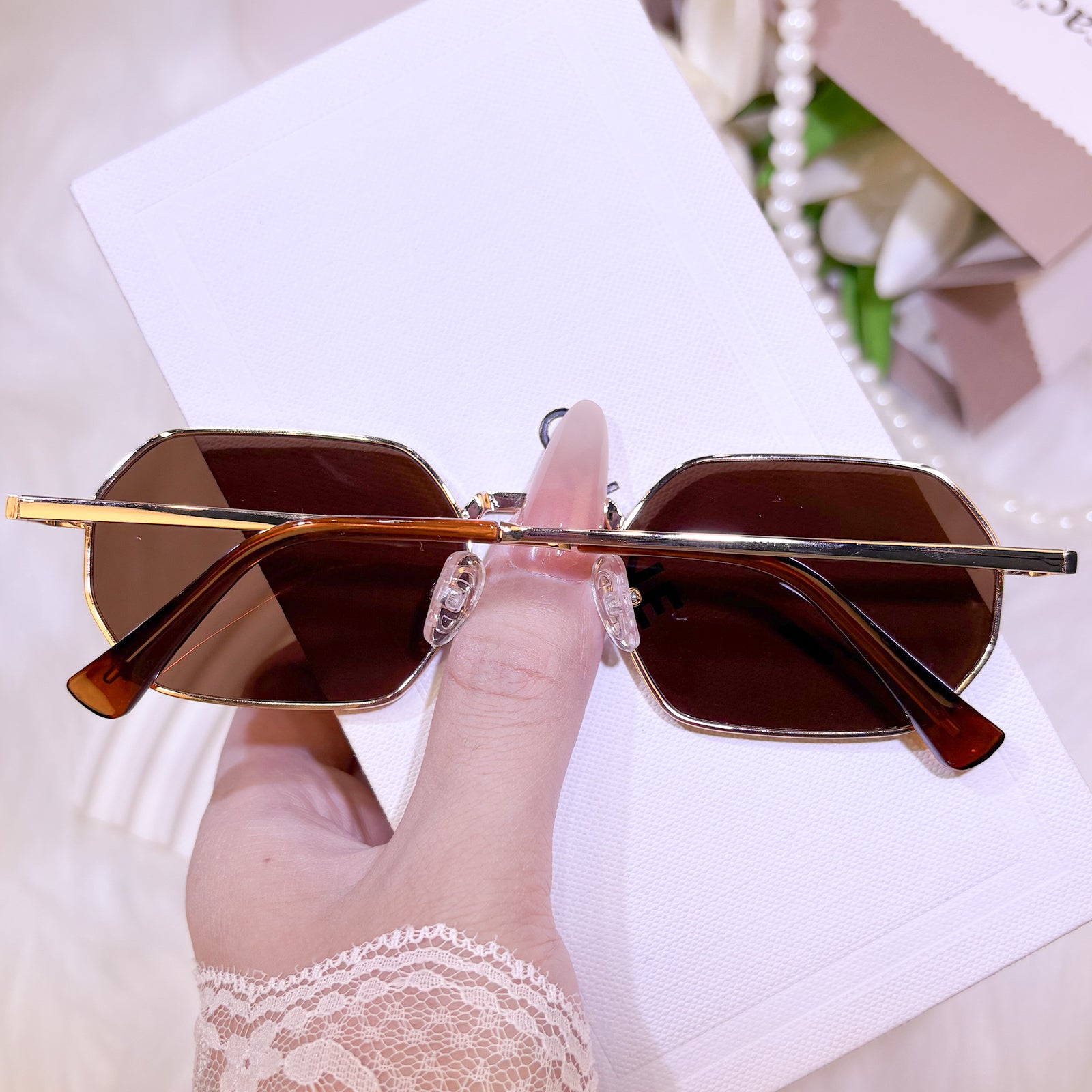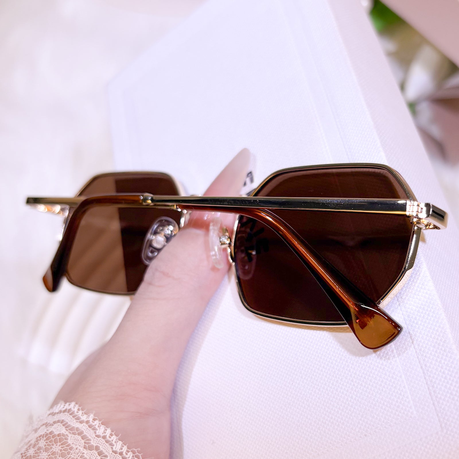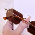 Crafted from lightweight metal with polished edges, these rectangular sunglasses blend architectural precision with timeless sophistication. Available in classic black for versatile authority and warm brown for organic refinement, each frame offers a perfect balance of structured elegance and everyday versatility for the modern woman.