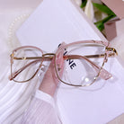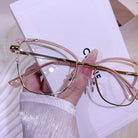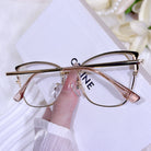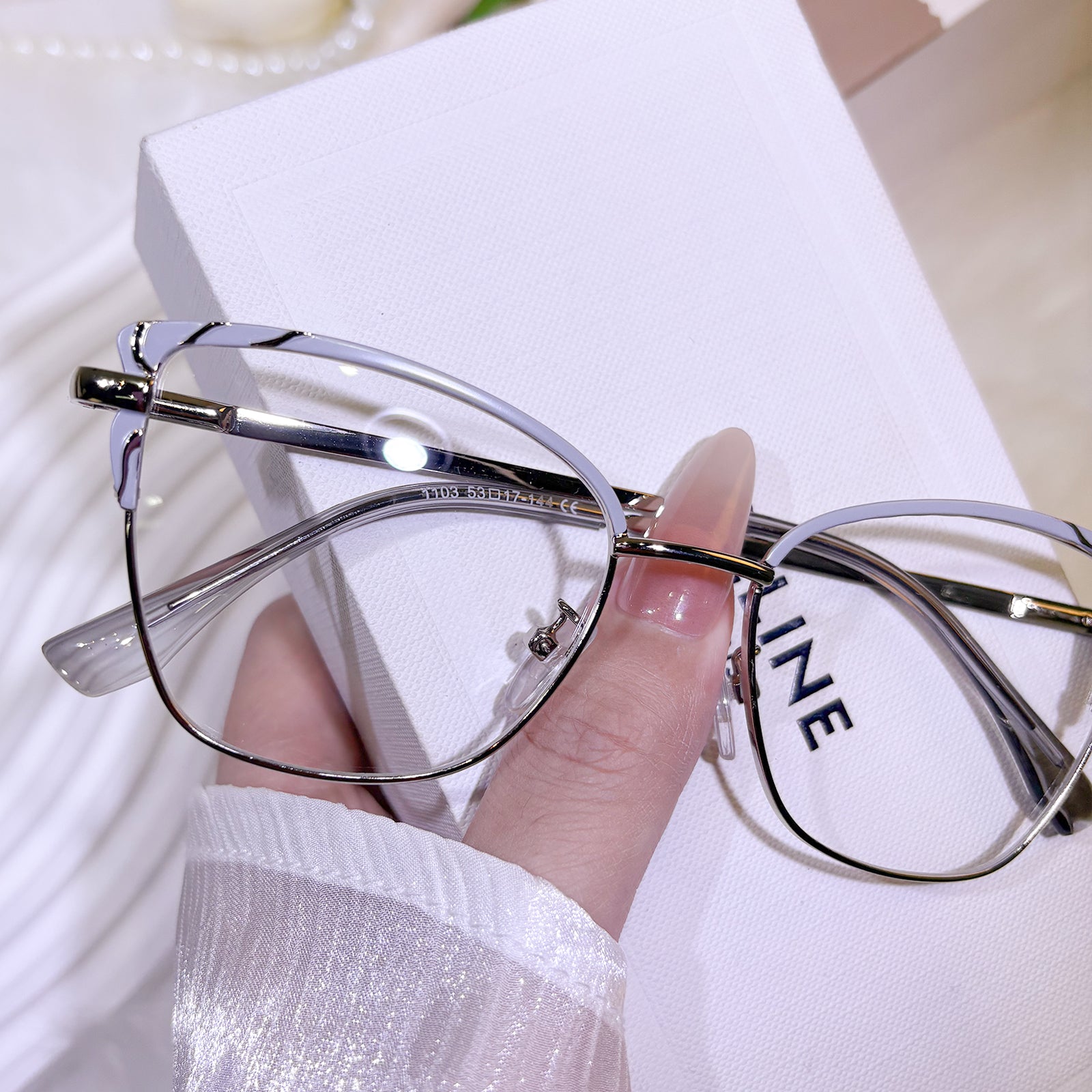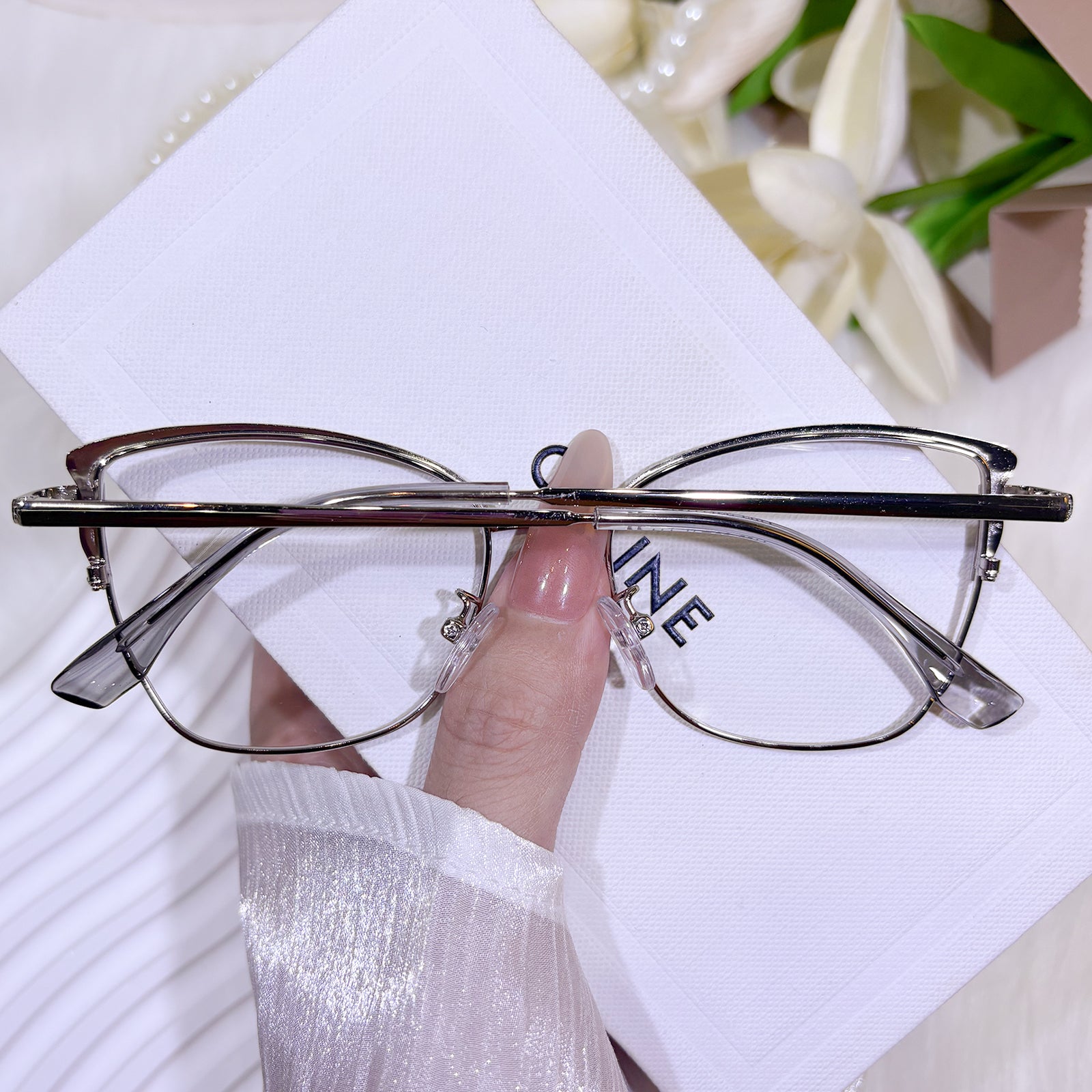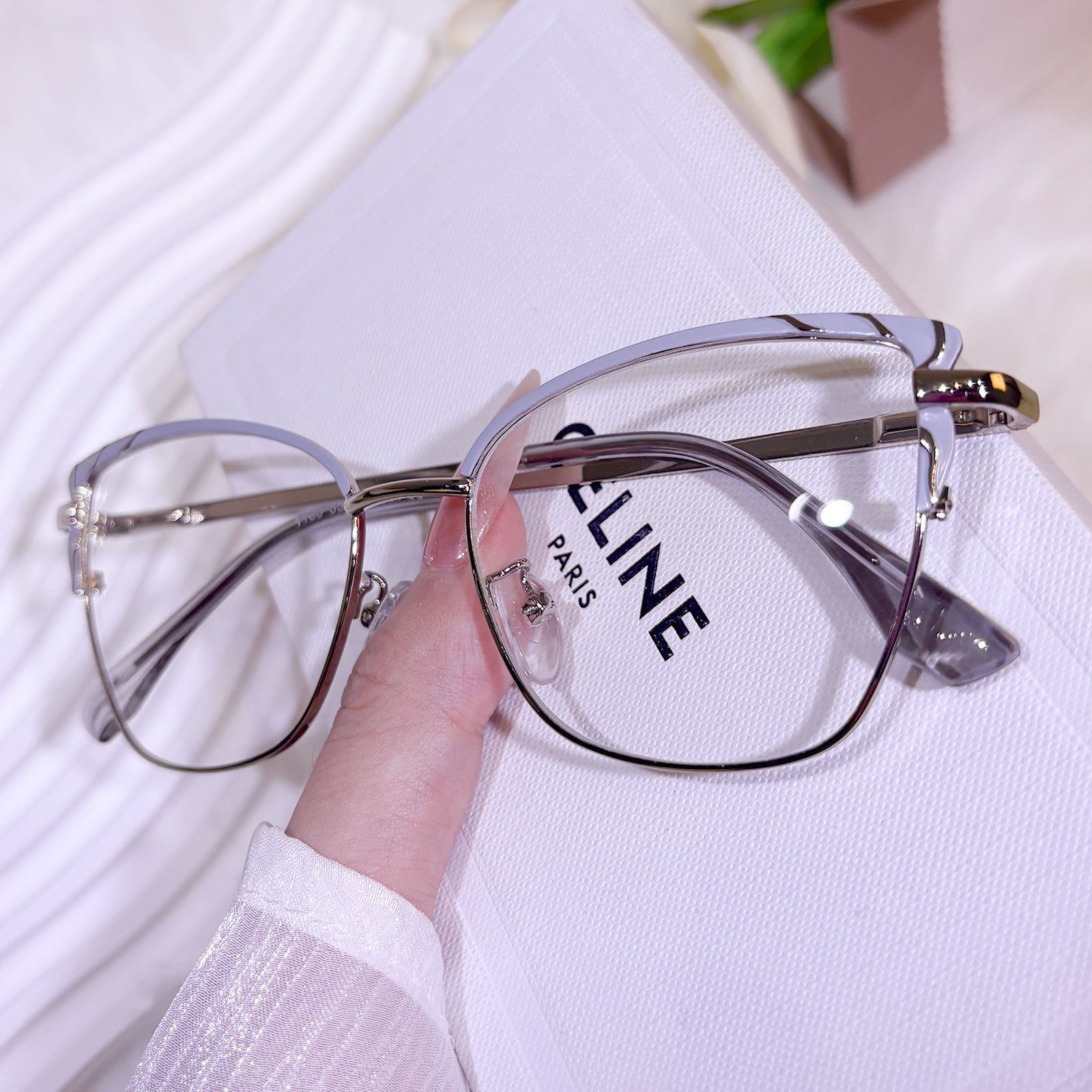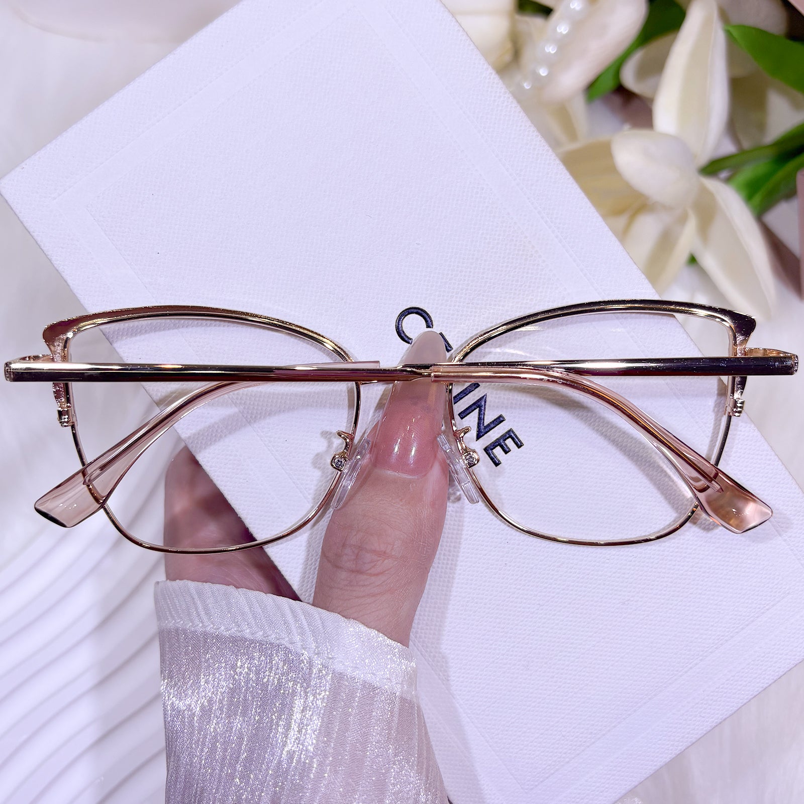 With its delicate golden outline and subtly pointed cat-eye shape, this frame brings out your inner charm while keeping things light and elegant.Perfect for a cute yet classy daily look.