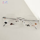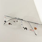 [Note: You need to DIY the stickers on the glasses yourself. The glasses shown in the pictures are just for demonstration—you won’t receive exactly the same design! ] Step into effortless sophistication with our rimless women’s glasses. Designed with ultra-lightweight temples, these glasses offer a sleek and minimalist look that's perfect for both business and everyday wear. Combining elegance with practicality, they provide a modern, professional touch to any outfit.