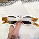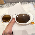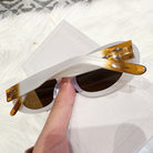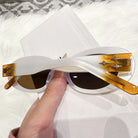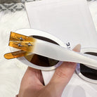 White and Orange Oval Sunglasses – designed for cool, confident girls. The playful oval shape blends vibrant orange and crisp white for a fresh, standout look. Delicate pearlescent details on the temples add a hint of shimmer, making these sunglasses the perfect accessory for showing off a bold and stylish personality.
