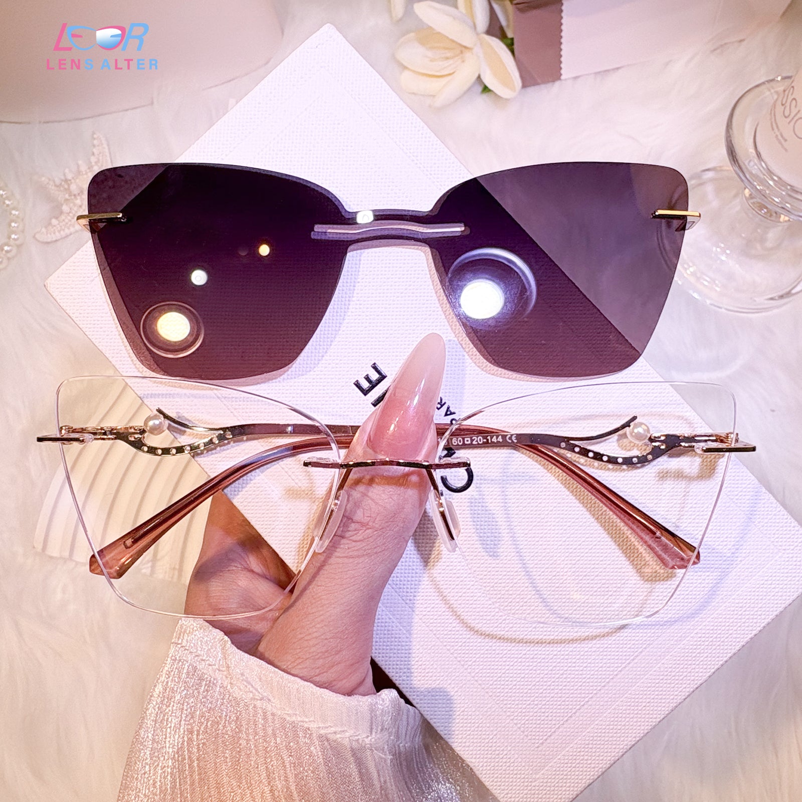 These rimless magnetic clip-on polarized sunglasses are both stylish and highly functional. Designed with a feminine touch, the seamless one-piece lens structure offers a sleek and modern look, while the practical clip-on feature makes them perfect for everyday versatility. A chic solution for women who value both fashion and functionality. (Tips: 1.The polarized feature is already included in the magnetic clip-on design. So, choose clear lenses instead of sunglasses after writing your prescription. 2.These glasses are not recommended if you have farsightedness or presbyopia. 3. The clip can NOT fit completely, if you choose progressive lenses.)
