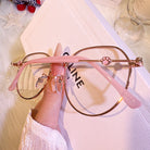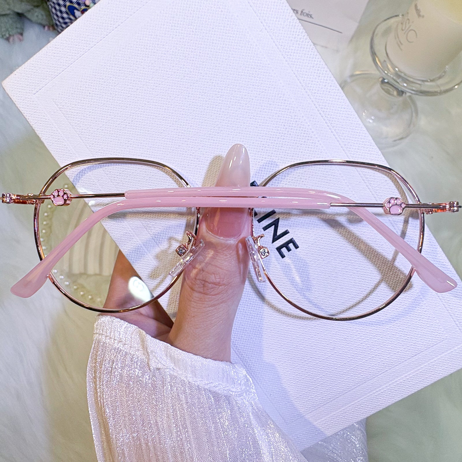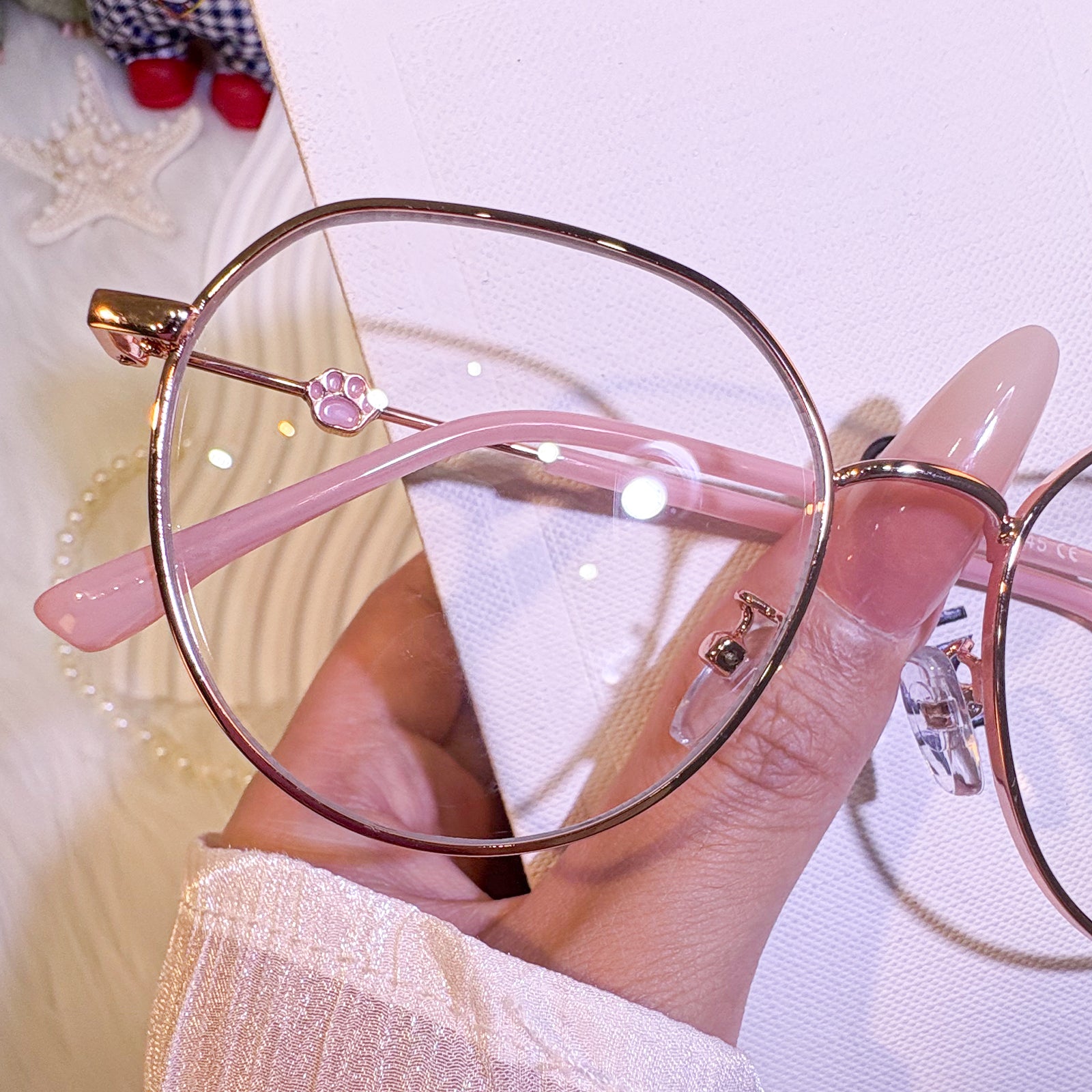 These geometric metal-frame glasses are a dreamy pick for anyone who loves cute, girly details. The temples feature an irresistibly adorable cat paw design — playful, soft, and full of personality. With their lightweight feel and flattering shape, they’re perfect for daily wear, whether you're out for coffee or styling your everyday look. Sweet yet stylish, these frames add a subtle touch of charm to any outfit.