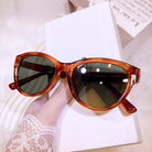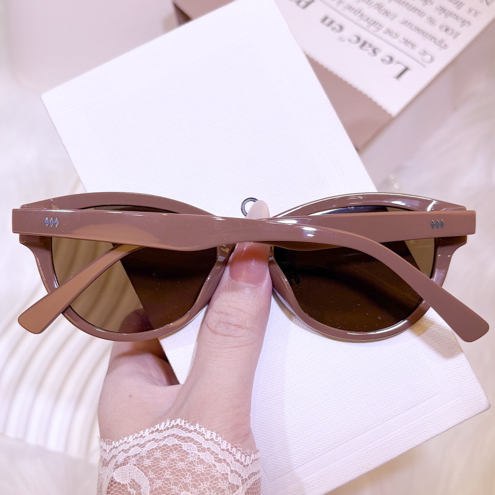 This elegantly sculpted cat-eye sunglasses for women are crafted in warm tones of russet and coffee. The frame, made from lightweight TR material, embraces a minimalist design that allows the rich, sun-kissed color gradient to take center stage. A perfect choice for those who seek eyewear that blends vintage inspiration with modern, understated luxury.