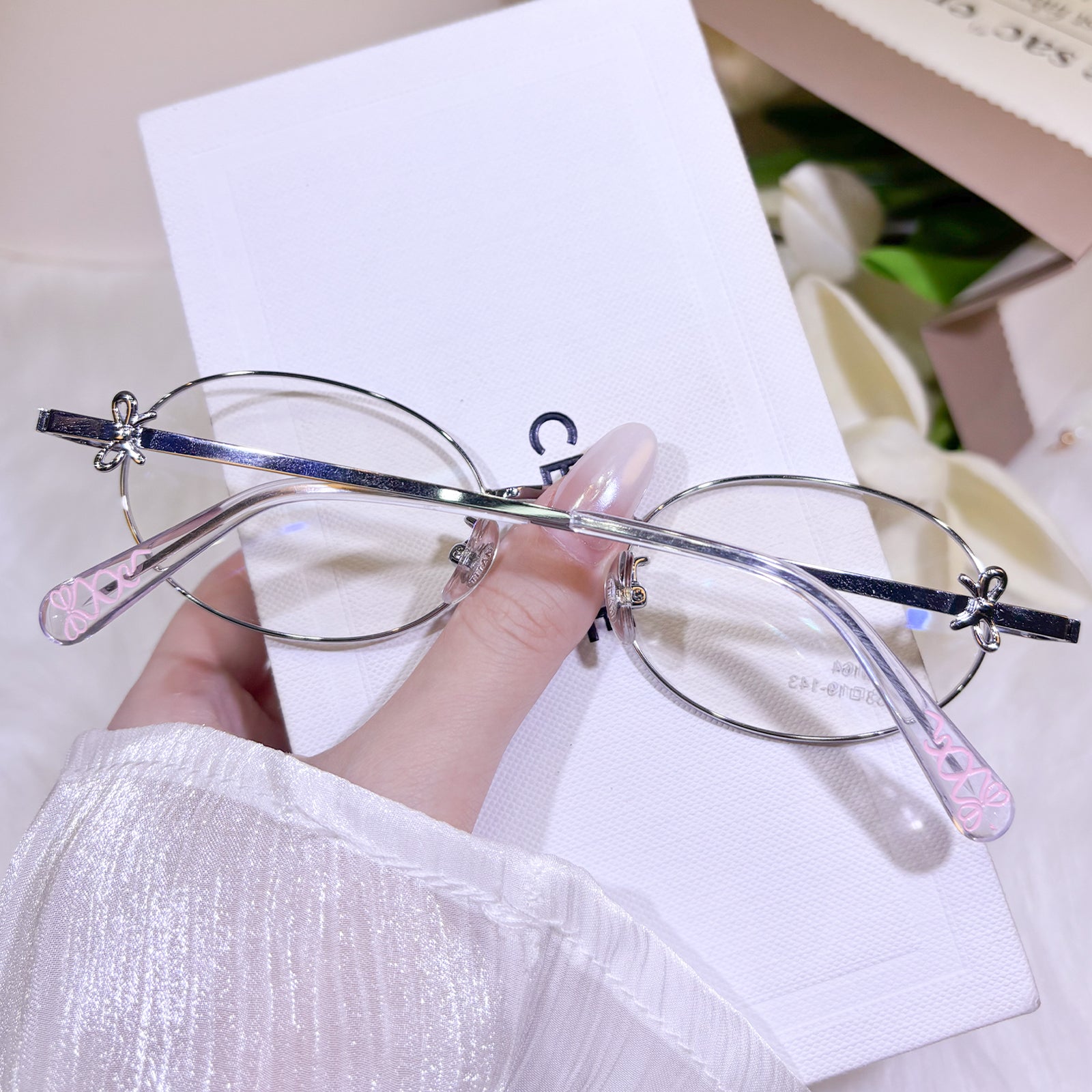 These oval-shaped glasses feature charming butterfly bow elements, with the temples adorned by delicate bow decorations that add a playful yet feminine touch. Crafted from sleek metal, the design is lightweight, dainty, and irresistibly cute — a perfect accessory for women who adore elegance with a hint of sweetness.