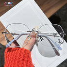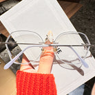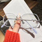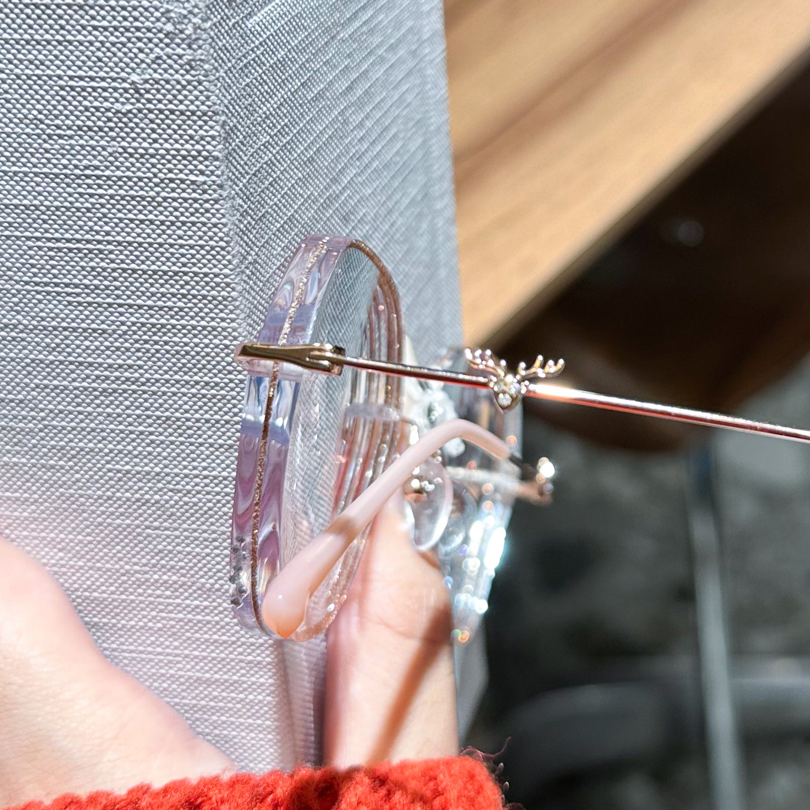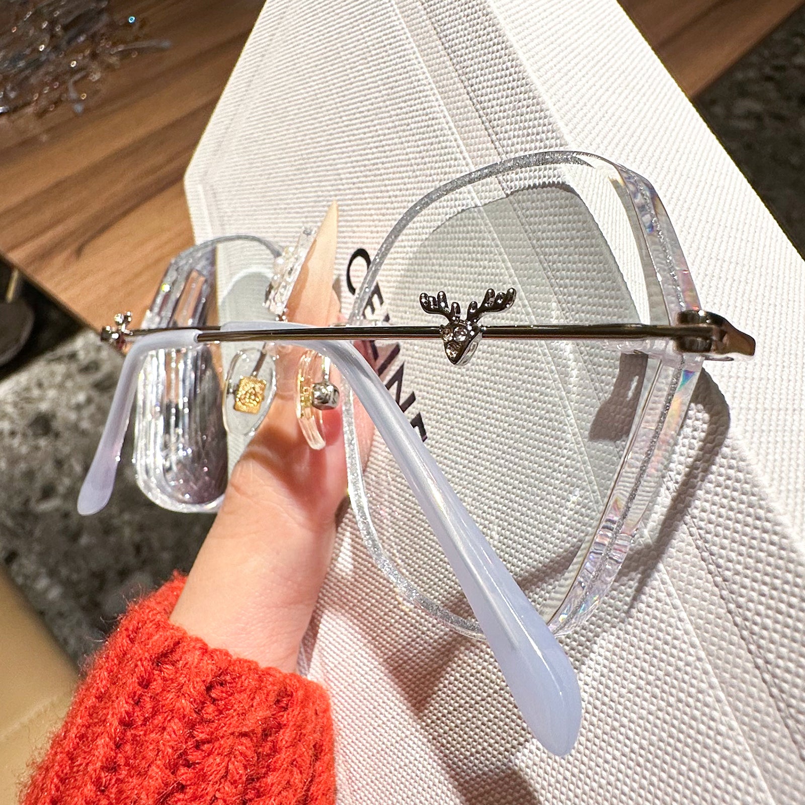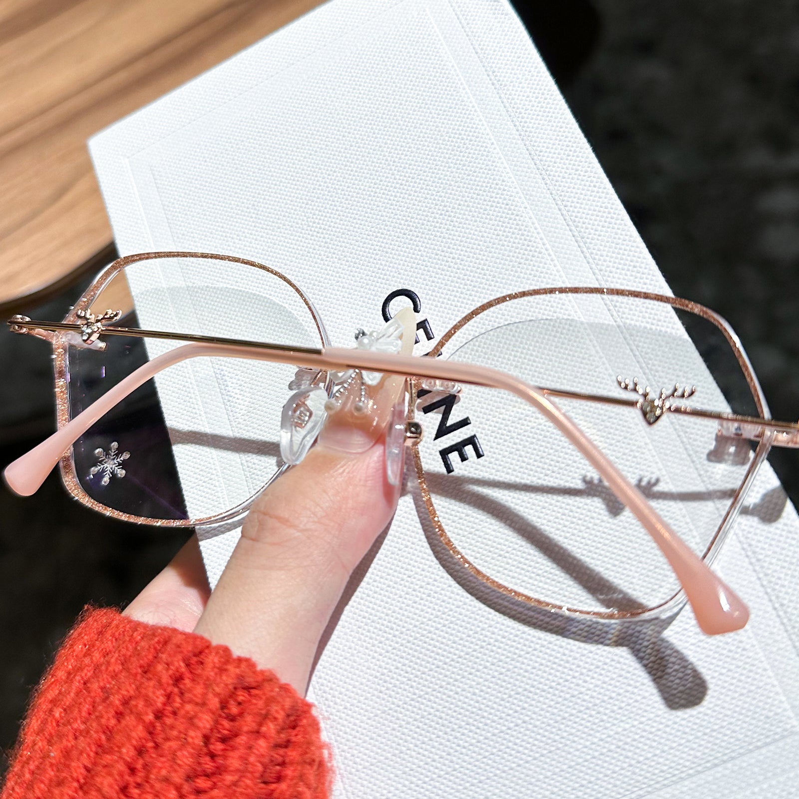 Embrace winter magic with these stunning geometric glasses. Featuring delicate snowflake and glitter accents along the lens edges, they exude a frosty elegance. The adorable deer embellishments on the temple arms add a whimsical, fashionable flair. Perfect for those who love to blend charm and style, these glasses are a standout accessory for the season.