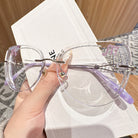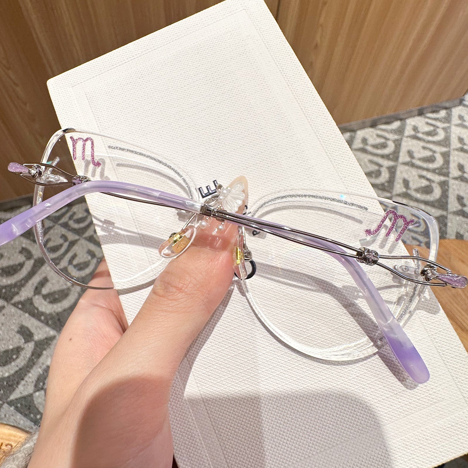 Mysterious and intense, Scorpio is known for its magnetic presence and emotional depth. Mysterious and magnetic, the Scorpio-inspired rimless glasses feature purple glitters on lenses with striking diamond details on the temples. Fierce and captivating—just like Scorpio energy.