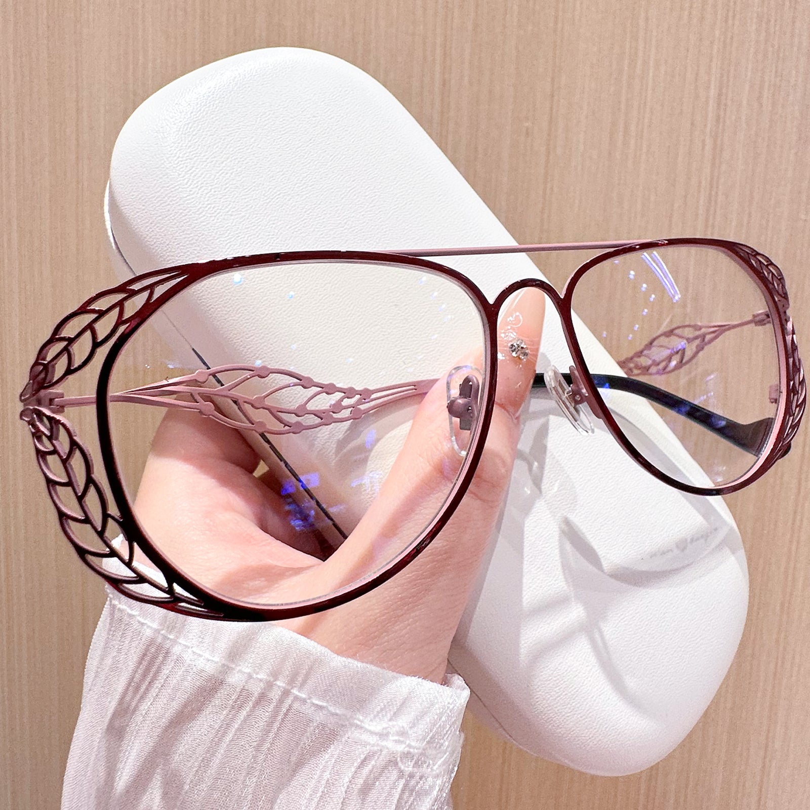 Bring a touch of natural elegance to your style with these beautifully crafted glasses featuring a delicate leaf-pattern design. Perfectly blending uniqueness and sophistication, these frames add a refined yet artistic flair to any outfit. Ideal for women who love to stand out with subtle, nature-inspired details, these glasses are a true statement of style and grace.