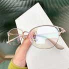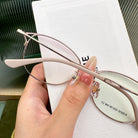 Blending sleek metal with a graceful cat-eye silhouette, this half-rim design shines in an elegant rose gold finish. Lightweight and refined, it adds a touch of modern femininity to any look with effortless charm.