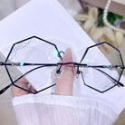 | Exclusive Design | Bold and unmistakably stylish, this rimless eyewear features striking black glitter edges with a spiderweb-inspired design that instantly commands attention. The shimmering details create a dramatic, eye-catching effect, making it a true statement piece. Fashion-forward, edgy, and impossible to ignore — perfect for those who love to stand out.