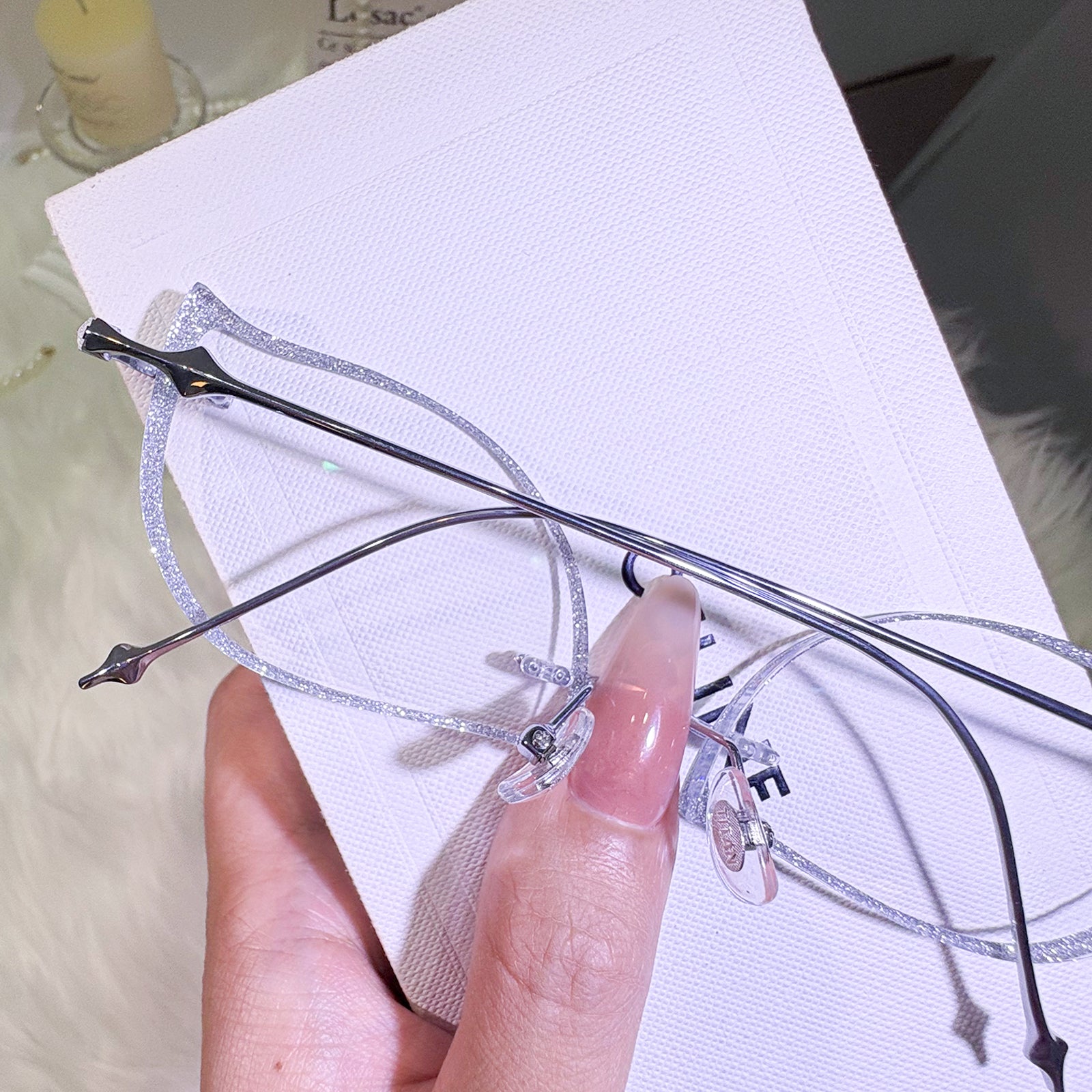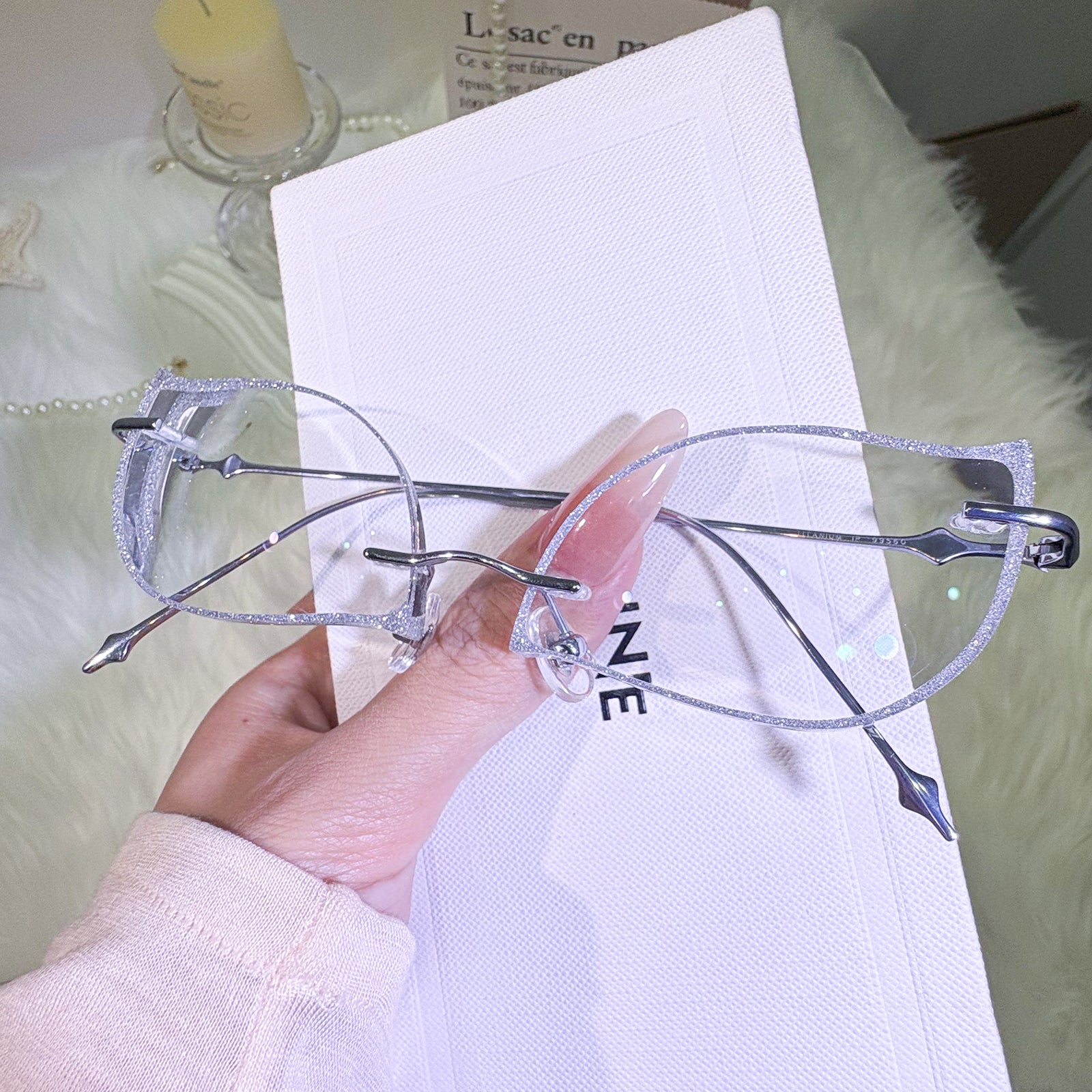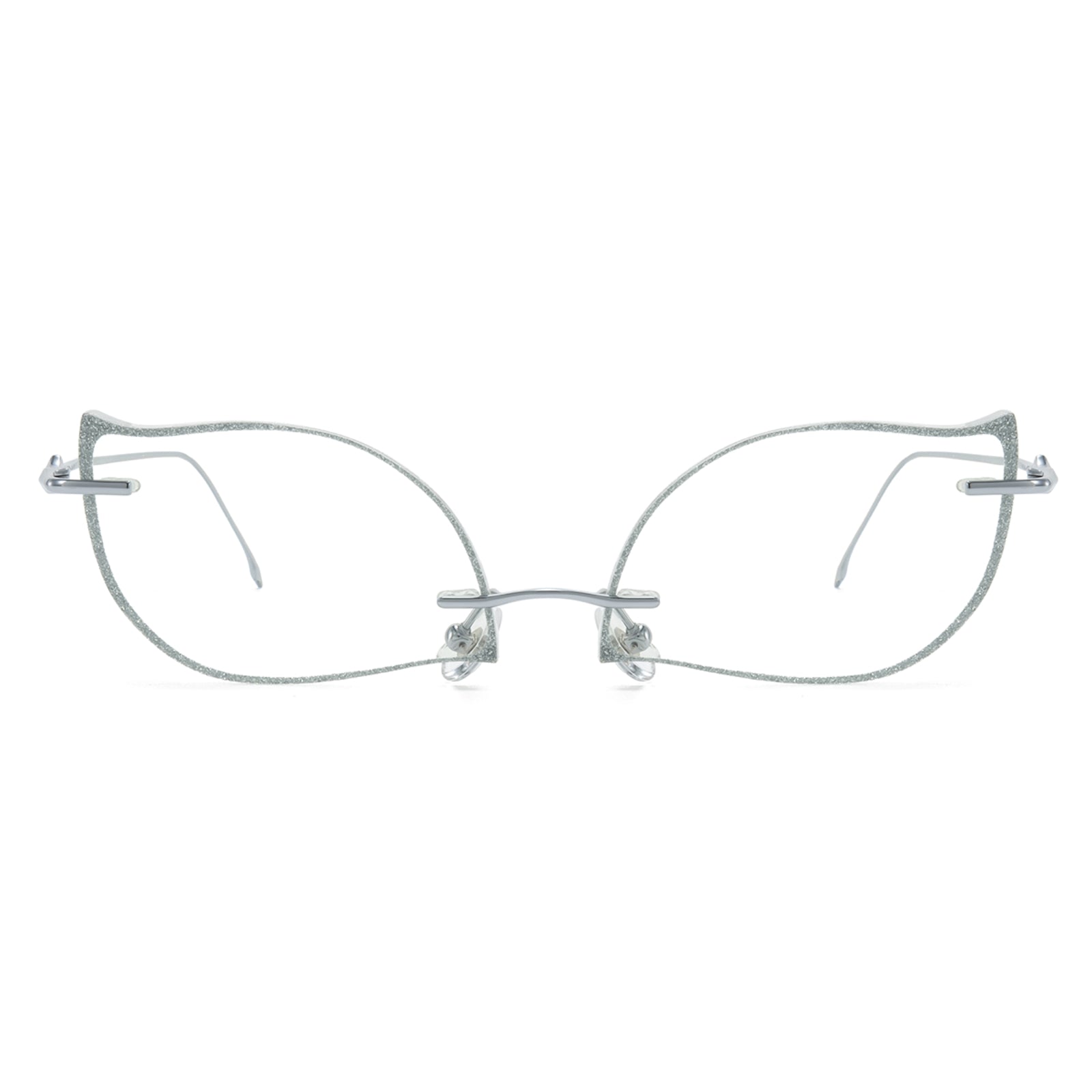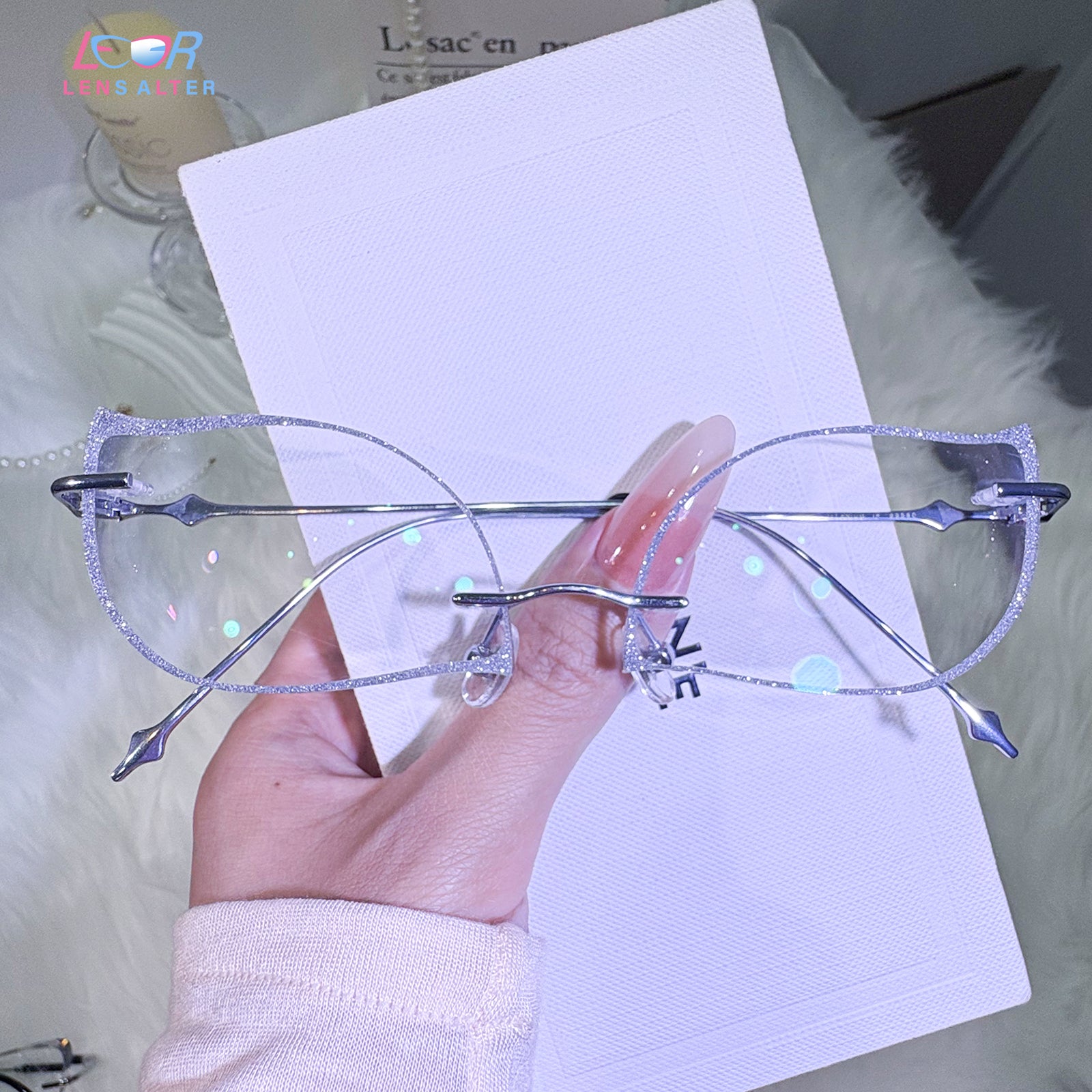 | Exlusive Design | The fox-eye rimless glasses have surprisingly made their dazzling debut! Available in two enchanting shades — glittery silver and romantic rose gold — these frames exude irresistible allure. The fox-eye silhouette adds a bold, flirtatious flair, while the ultra-lightweight titanium temples ensure lasting comfort. Perfect for the fashion-forward girl who loves a hint of mystery and glamour in her everyday look.