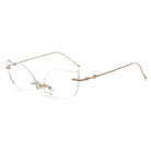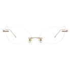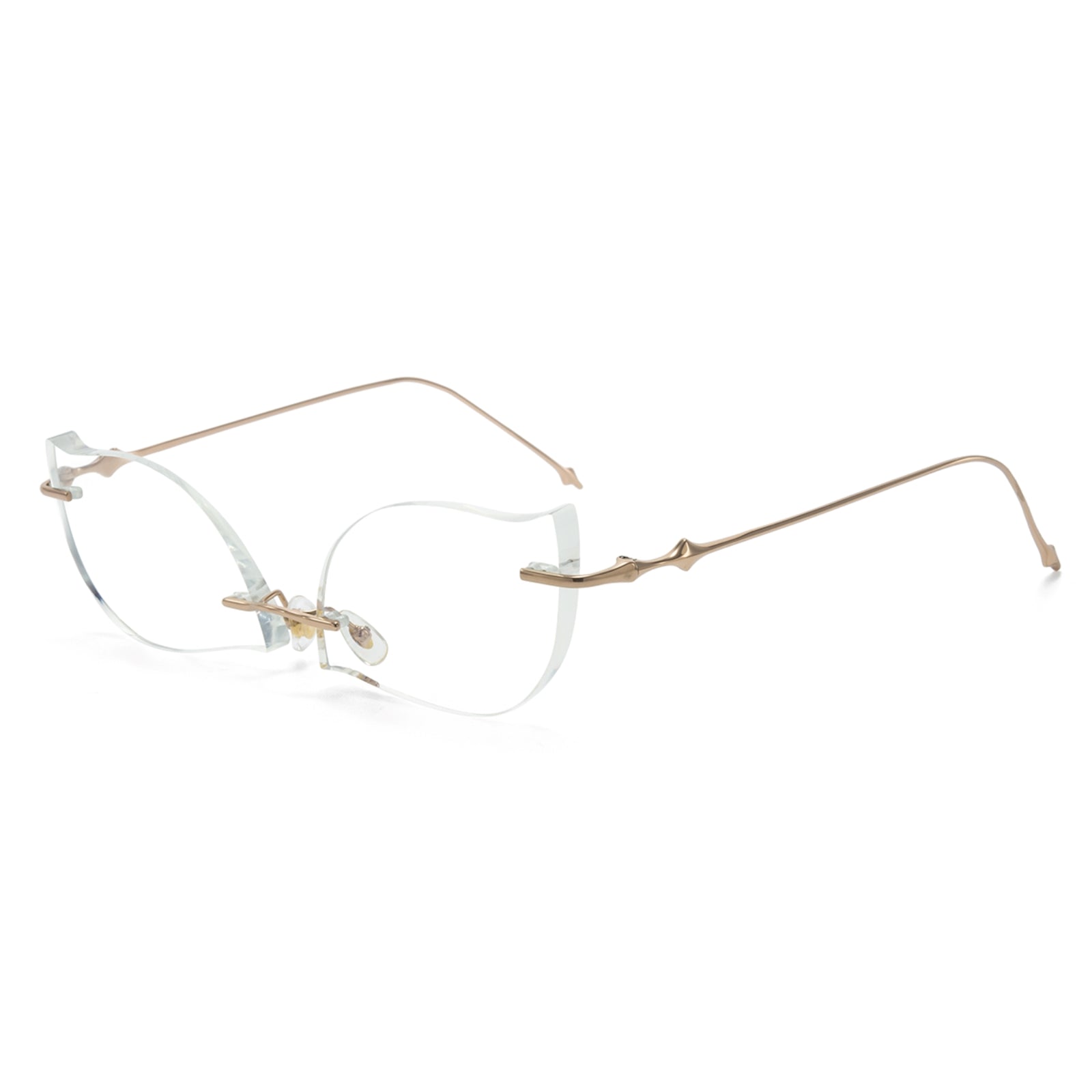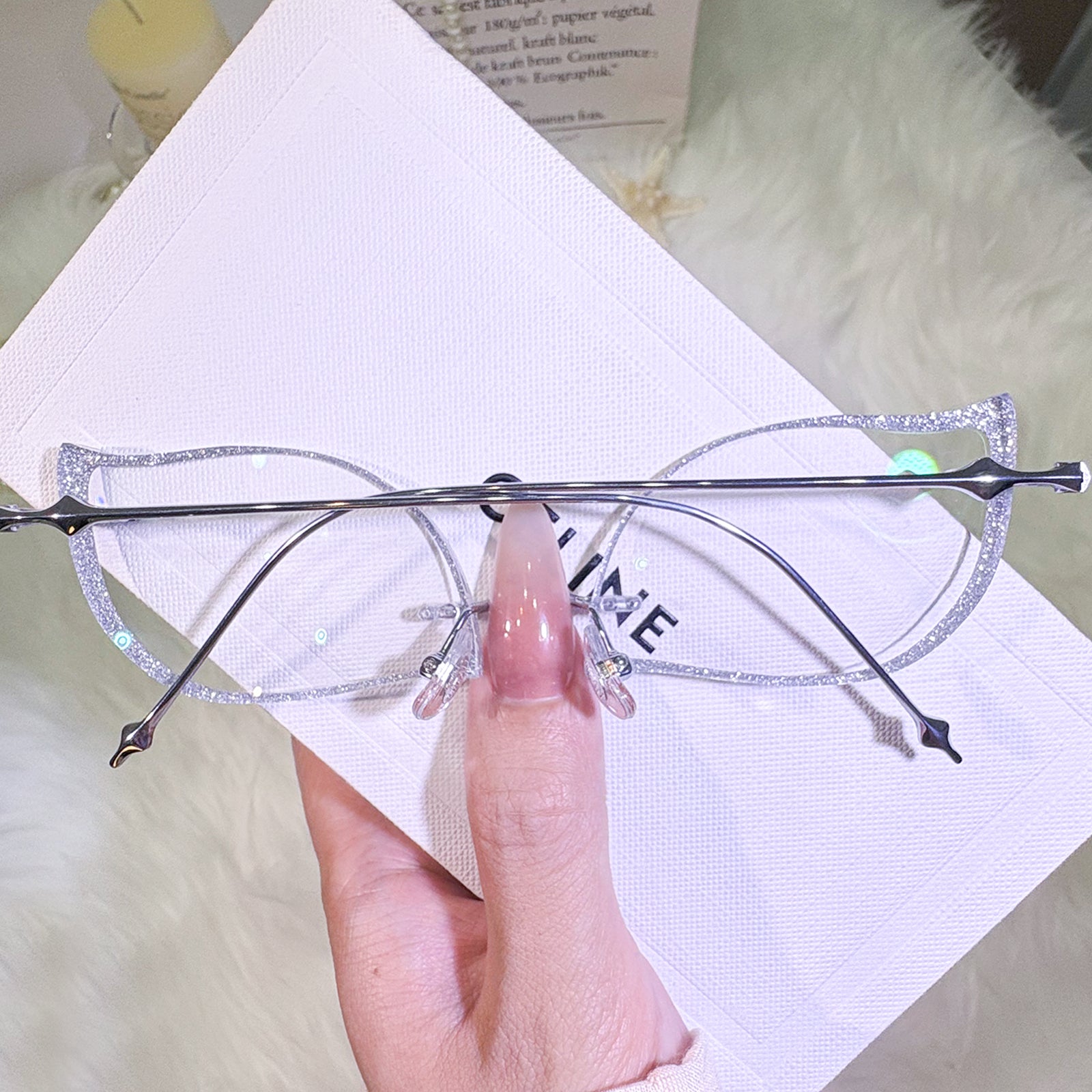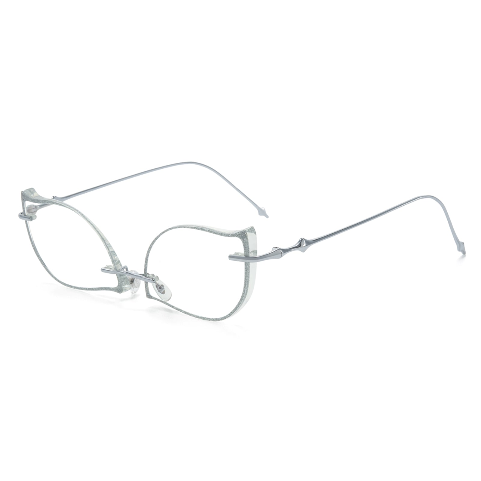 | Exlusive Design | The fox-eye rimless glasses have surprisingly made their dazzling debut! Available in two enchanting shades — glittery silver and romantic rose gold — these frames exude irresistible allure. The fox-eye silhouette adds a bold, flirtatious flair, while the ultra-lightweight titanium temples ensure lasting comfort. Perfect for the fashion-forward girl who loves a hint of mystery and glamour in her everyday look.