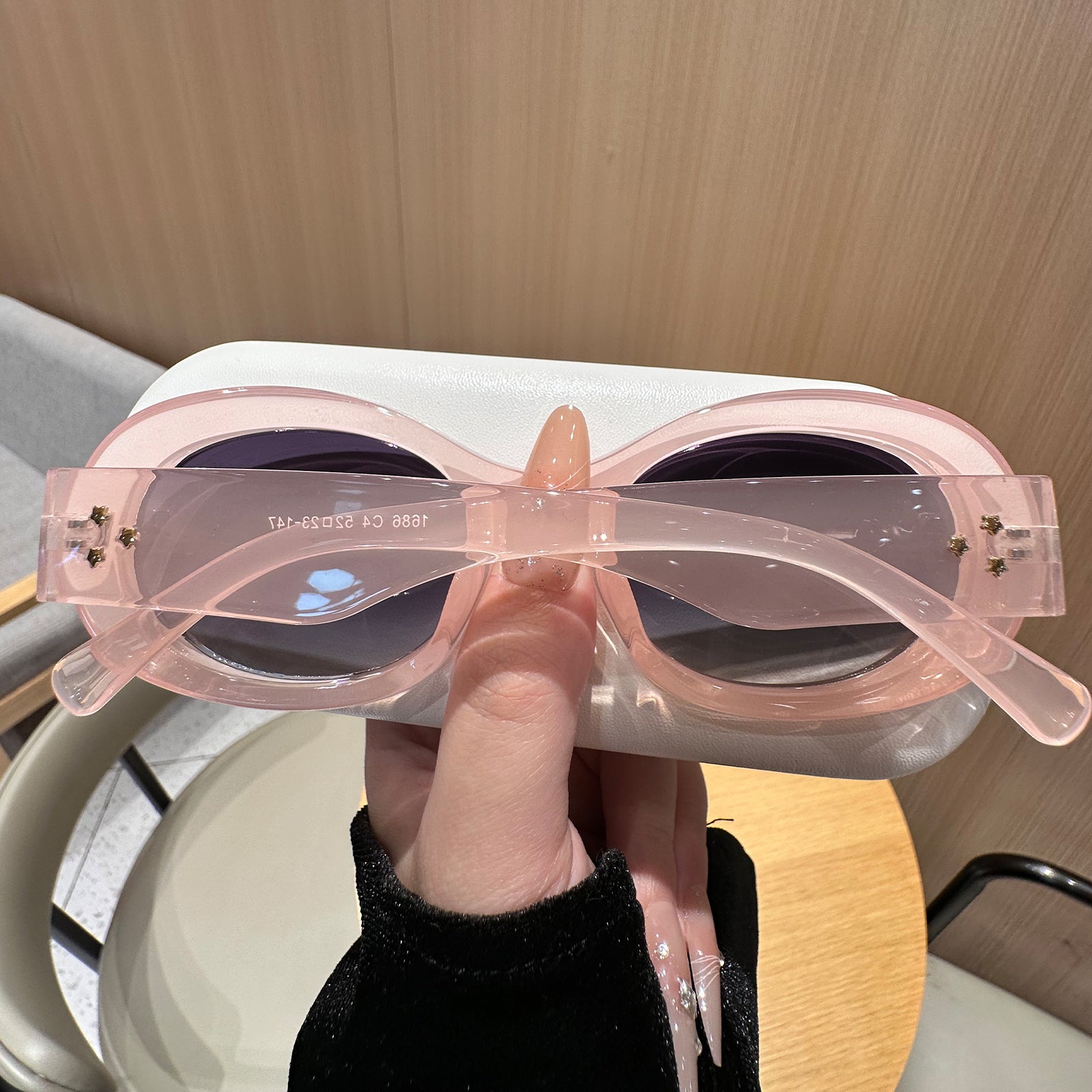Add a playful touch to your style with our petite pink oval-frame sunglasses. Designed to be both cute and compact, these charming sunglasses bring a fun, fashionable vibe to any outfit, perfect for those who love a subtle yet stylish accessory.
